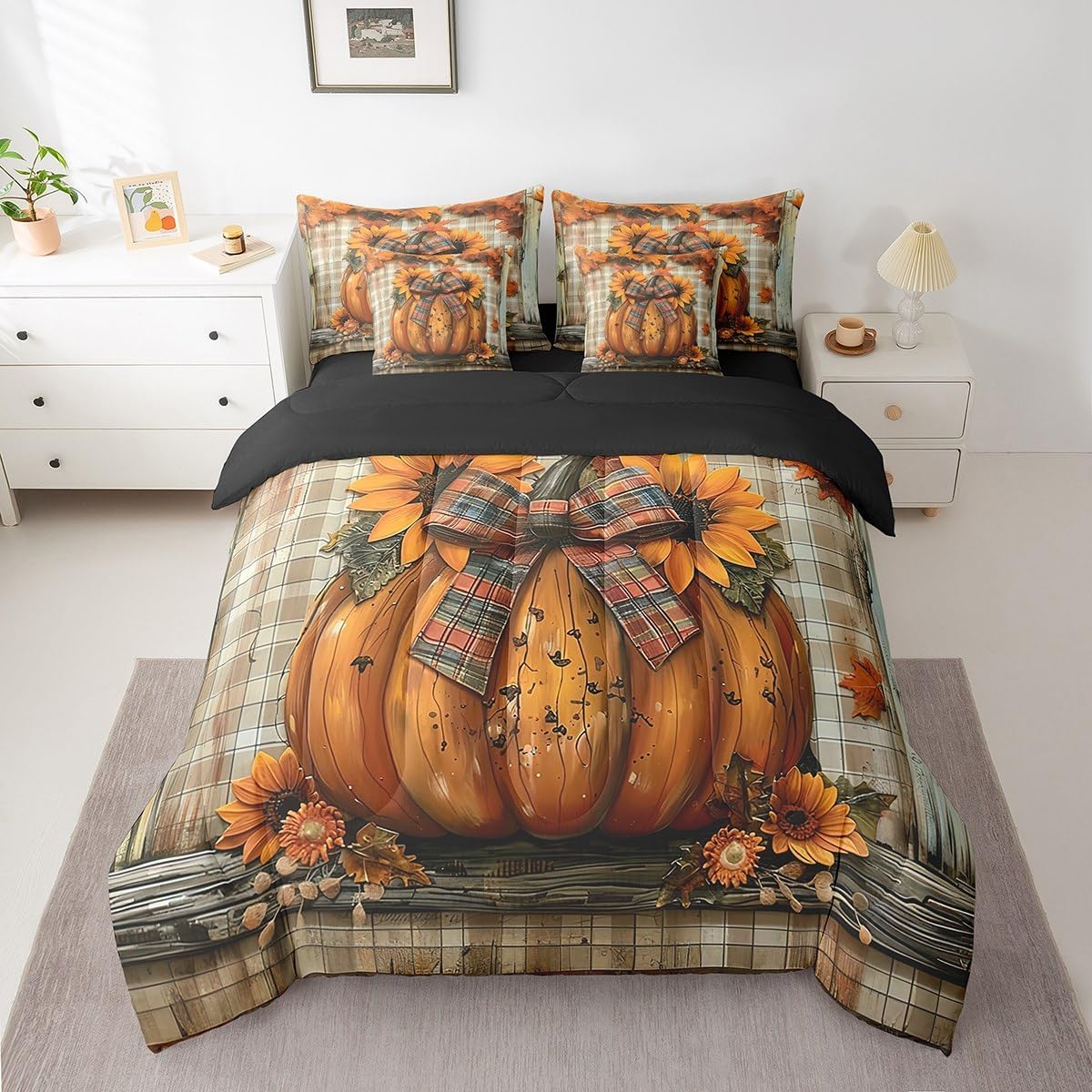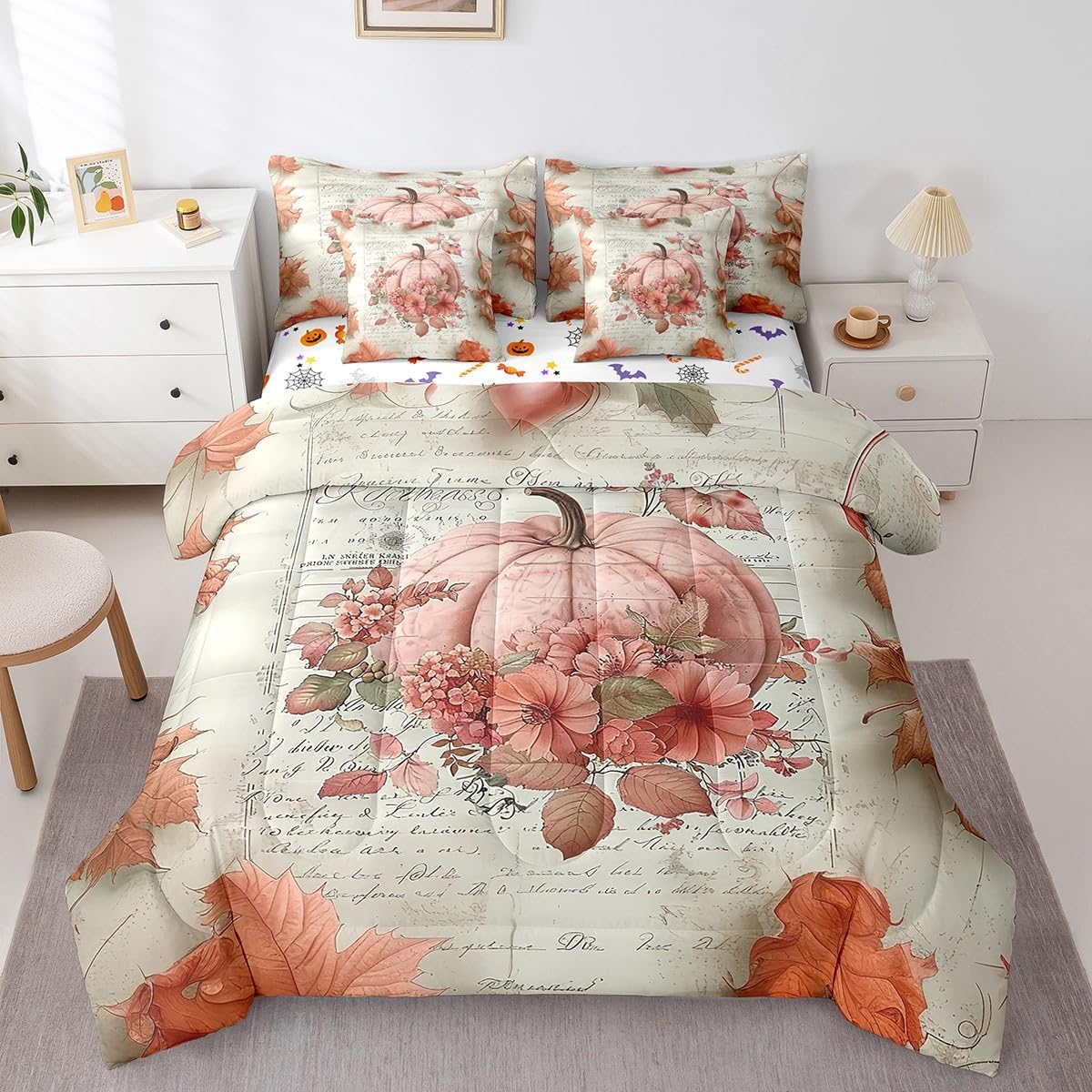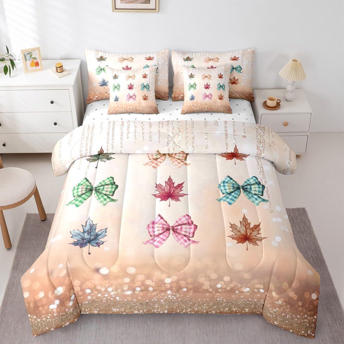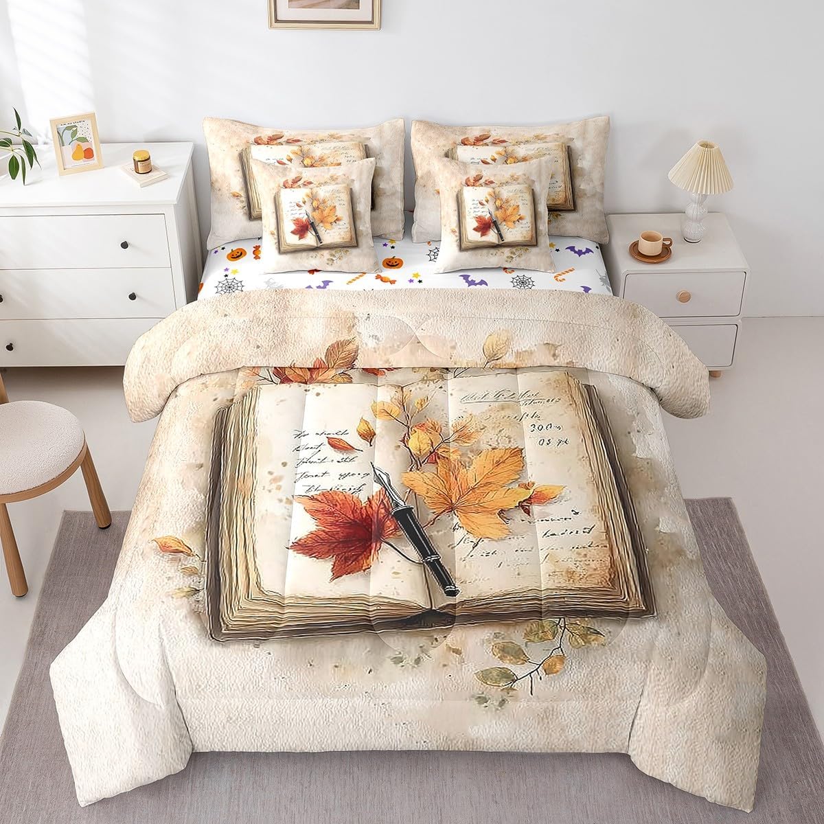 Colorful Makeover to Your Life Various size and color options, there are always decor room. Size Options: 7 Pieces Twin Size,1 Comforter 68"x 90", 1 Fitted Sheet 39"x75"x16", 1 Flat Sheet 96"x66", 2 Pillow Cases 30" x 20",2 Throw Pillow Covers,Covers Only. 18"x 18". 7 Pieces Full Size ,1 Comforter 79"x 90", 1 Fitted Sheet 54"x75"x16", 1 Flat Sheet 96"x81", 2 Pillow Cases 30" x 20",2 Throw Pillow Covers,Covers Only. 18"x 18". 7 Pieces Queen Size,1 Comforter 90"x 90", 1 Fitted Sheet 60"x80"x16", 1 Flat Sheet 102"x90", 2 Pillow Cases 30" x 20",2 Throw Pillow Covers,Covers Only. 18"x 18". 7 Pieces King Size,1 Comforter 104"x 90", 1 Fitted Sheet 78"x80"x16", 1 Flat Sheet 106"x90", 2 Pillow Cases 30" x 20",2 Throw Pillow Covers,Covers Only. 18"x 18". Decoration: For your mom, dad, sister, brother, grandma, wife, husband, and all other beloved with many surprising designs. You can find a design for everybody and every interest in our collection. Your Home,You Decide Different types of bedding sets could bring rooms in different styles. Also, rooms in different styles needs different types of bedding sets