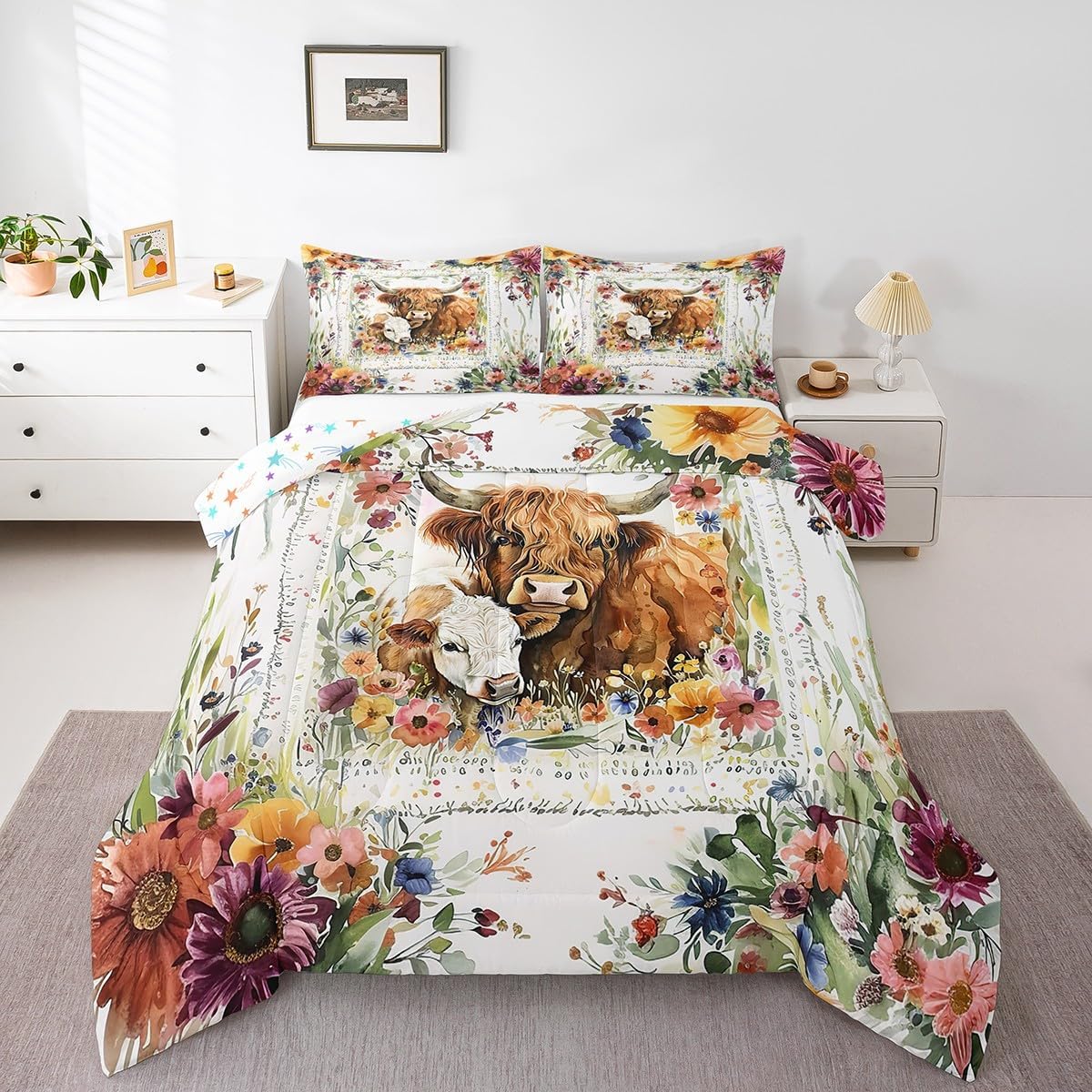 Makeover your bedrooms every season with our comforter sets; good item for your room, girls boys youth room, master bedroom Also a great decoration idea for your mom, dad, sister, brother, grandma, wife, husband, daughter, son and all other beloved Size Information:1 Toddler size comforter 42" X 58" and 1 pillowcase 30" X 20"1 Twin size comforter 68" X 90" and 1 pillowcase 30" X 20"1 Full size comforter 79" X 91" and 2 pillowcases 30" X 20"1 Queen size comforter 90" X 90" and 2 pillowcases 30" X 20"1 King size comforter 104" X 90" and 2 pillowcases 36" X 20"Useful and practical: A practical product for homes, dorm rooms, hotels, guest rooms. Comfortable to use for being polyester which is soft and breathable Unique design:Vivid colors and clear printed with digital printing. These unique designs match well with various color of your rugs, curtains, headboard, furniture, and all other decor accessories Characteristic:As manufacturers of digital printed home textiles, we follow current trends and bring you new home fashion Either a comforter to your family or friend, relative or boyfriend girlfriend, or to yourself, the item should be interesting and authentic Note:The comforter and pillow cases are printed on the front side only, the back of them are white colored