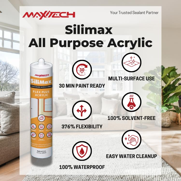 Tackle your next painting or home improvement project with confidence using our premium Painter’s Caulk Paintable — a high-performance caulk tube white interior caulk made for smooth application, fast dry times, and long-lasting results. Whether you're using this for crown molding caulk, baseboard caulk white, caulk trim, wall caulk, window caulk, or wood caulk, this sealant caulk waterproof delivers a flawless, clean finish in as little as 30 minutes. Our white latex caulk is a must-have for professional painters, contractors, and DIY homeowners alike. The sealant caulk waterproof is also great as an exterior white caulk due to its waterproof caulking sealant formula. This acrylic sealant white caulking silicone waterproof is specially formulated for interior and paintable exterior caulk use, offering strong adhesion and flexibility where you need it most. The latex caulk white paintable resists cracking, shrinking, and peeling, even with seasonal temperature changes or subtle movement in joints. You can rely on it to stay in place and maintain its clean appearance over time. Application of our white paintable caulk is simple and mess-free. The paintable caulking interior tools beautifully, creating a smooth, consistent bead that holds its shape with no sagging or air pockets. Clean-up of white caulking is easy with just soap and water before it cures—no harsh chemicals required. The paintable silicone caulk bonds to a wide range of materials, including wood caulking filler, drywall, plaster, brick, caulk for wood floor gaps, white caulking for baseboards , and more, all without the need for priming. Our colored silicone caulk is perfect for everything from pre-paint prep to full remodels. This paintable caulk white delivers a professional finish for sealing trim, filling gaps, and touching up rental units or renovations. As a painters caulk white paintable solution, it offers excellent value without sacrificing performance. Designed as a flexible caulk for both indoor projects and caulk outdoor use, this silicone white acrylic latex caulk provides a durable, paint-ready seal. Save time, save money, and get long-lasting results with our siliconized acrylic caulk, engineered to outperform many store brands in everyday maintenance, renovation, and resale prep.