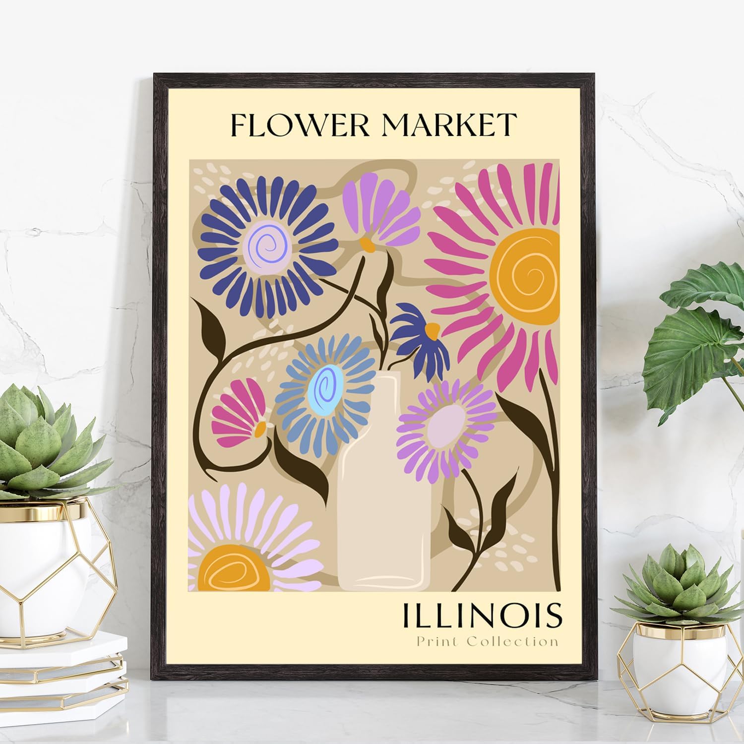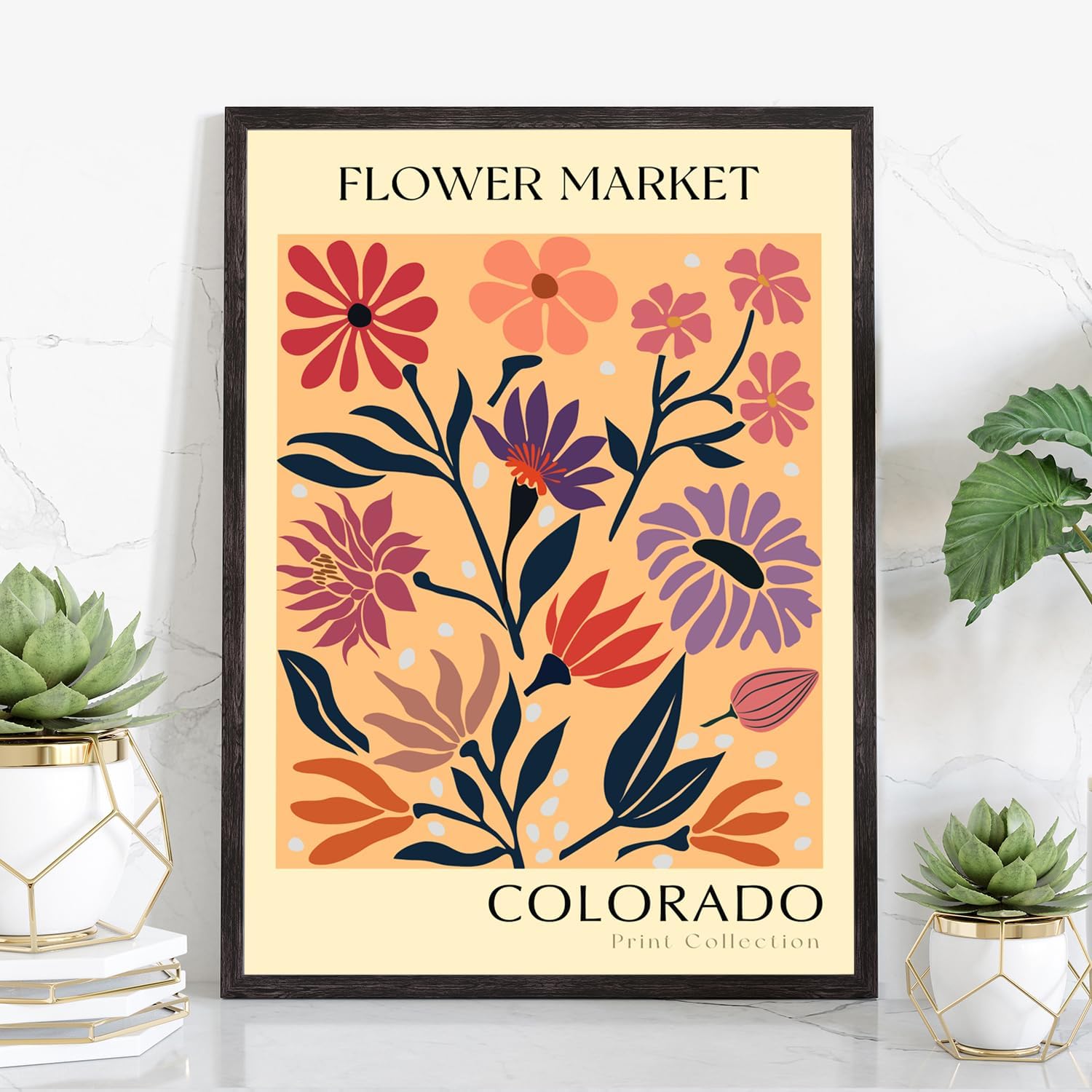 Flower Market Poster PrintsFlower Market Art PrintBotanical ArtworkFloral Decor PostersVintage Colorful Floral Wall Art DecorHome Office Wall Decoration