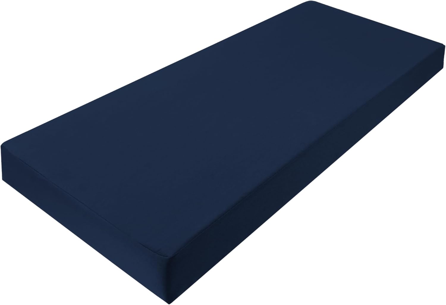 High density foam has a compression rate of 44lbs. It features the perfect amount of cushioning and stiffness. Its soft but still holds its firmness and support for an individual to sit on it without compressing the foam too much. Compression = firmness compression (not density) is what determines firmness. If you dont want a cushion thats hard as a rock or a mattress that sinks when you sit on it, you have to check the compression or ild number. Compression means the number of pounds necessary to compress a piece of foam 25% and still bounce back to the original thickness. For example, a 4" thick piece of foam that requires 33 lbs. To pack it down 1" and have it return to its full 4" thickness has a 33 lb. Compression rating or (ild) -indention load deflection. - all foam sheets are sold per sheet - not per yard. Do not open with a box cutter. Use a ball point pen or a pencil. Start by making a little incision and break it from there - durability : will last 7 to 10 years Medium density foam is used for firmness yet relax able cushion. It has high quality compression and material to keep it lasting for longer periods of time even when harsh weight is applied. A 50% restocking fee may apply on returned items.