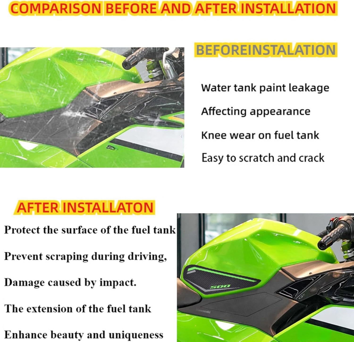 *The fuel tank sticker is easy to use and easy to install. There is an adhesive on the back side, and it is easy to peel it off and paste it. *The traction pad is made of high quality rubber, is hard to get scratched, does not slip, is waterproof, and provides better protection. Durable, durable, and suitable for long -term use with excellent adhesive quality. *A better driving experience tank grip traction pad makes the grip and riding very easier and less energy required to hold the car. *High density rubber increases strength, is powerful, adherent, has no rubber remaining, and does not damage the painted surface of the motorcycle. The larger the friction, the safer and the reduced damage to the knee. After that, do not wash your car within a few days after the fuel tank sticker is installed. * Notice: Photos and products may vary slightly depending on the monitor and lighting. Thank you for your understanding.