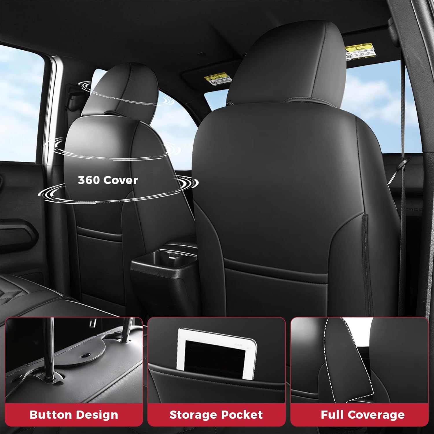 | Special Features | Custom fit for specific tacoma models, airbag compatibility, baby safety seat compatibility, seat buckle compatibility, premium faux leather material, waterproof, easy to clean, 40/60 design for independent coverage of bench seats |