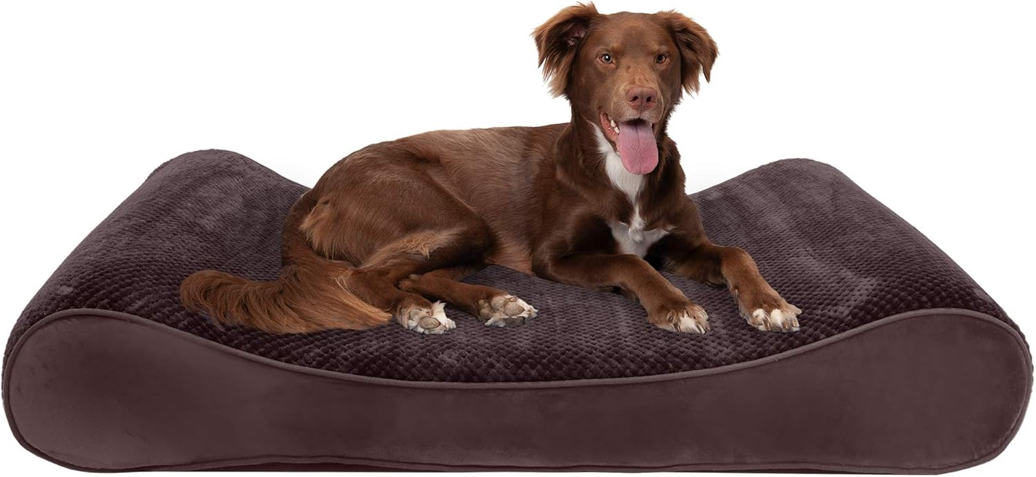 Give your best friend the comfort and support they need with a Furhaven Ultra Plush Luxe Lounger Dog Bed. This ergonomically-designed pet bed is contoured to cradle your pet’s body and provide therapeutic back and neck support. Luxe Lounger pet beds features a medical-grade orthopedic foam core topped with gel-infused memory foam. Micro gel beads help keep the bed cooler while memory foam conforms to your pet's shape providing superior support of joints and pressure points. Gel foam has cooling properties reducing the sleeping surface by 1 or 2 degrees, wicking heat away from your pet. The superior support provided by both foam cores will help your pet reach a deeper, more restorative rest for your pet's health. These are the perfect dog beds for hot summer days. Ultra plush sleep surface is super soft for the ultimate "cozy" experience. Step-on bed design is easily accessible by smaller, older or disabled pets. Removable, washable cover is manufactured using overlock safety stitching for longer lasting durability. This pet bed includes a water-resistant polycanvas base panel and is available in various stylish color options to blend with any home décor. Foam core is CertiPUR-US certified and may be spot cleaned. Pet bed cover is zippered and may be machine or hand washed. Easy to clean. Cover care: Remove from core before washing (see seam label for fabric care instructions). Foam care: Cooling gel foam is highly absorbent. Spot clean with mild soap or enzyme-based cleaning spray. Rinse but DO NOT SOAK OR SUBMERGE. Press out moisture with a dry towel and air dry. A fan may be used to speed drying. Do not wring or place in machine dryer. Dry completely before use. Not for unsupervised use by animals with destructive chewing behavior.