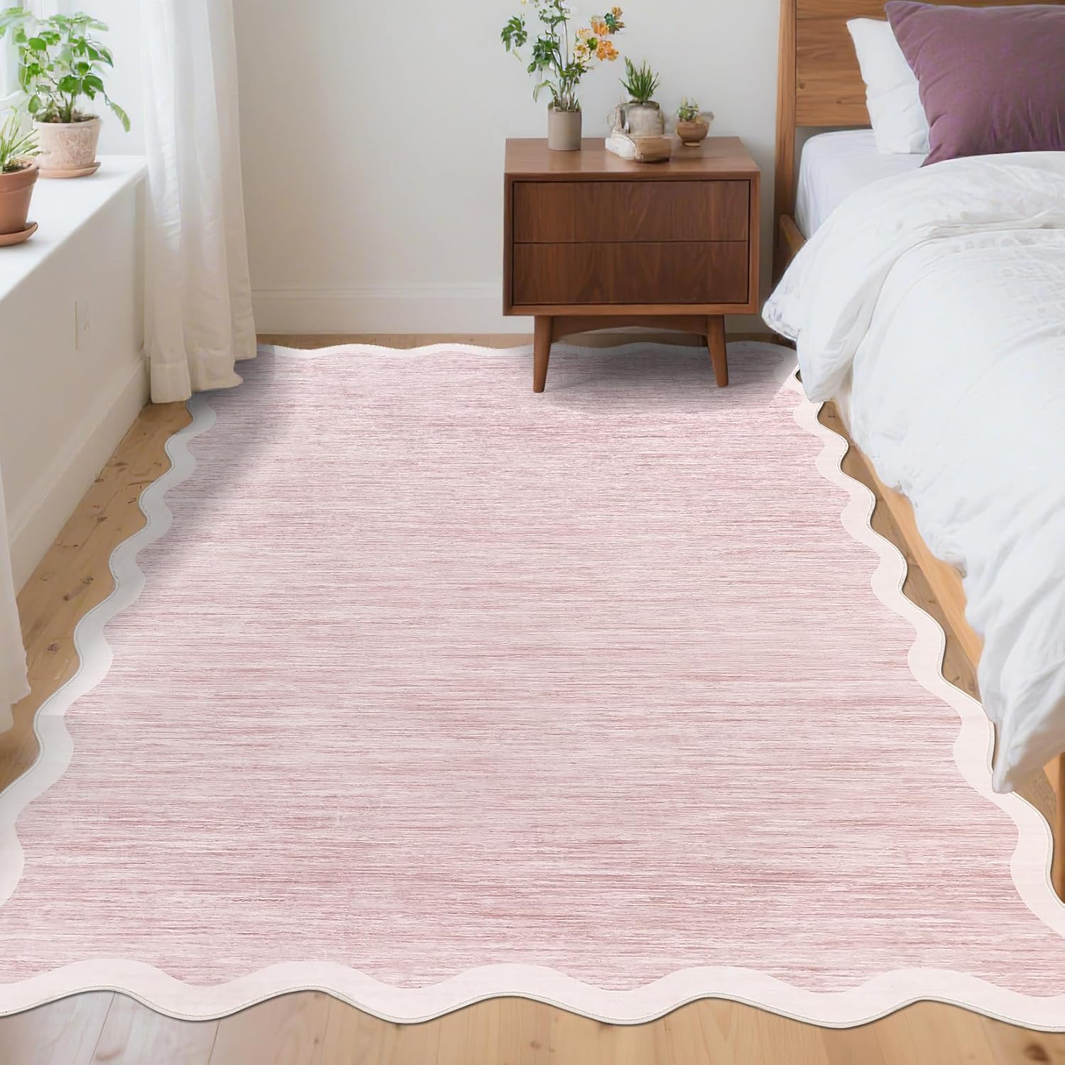 • 【Timeless Scalloped Edge Design】This washable and foldable rug features a beautiful contrast color with a distinctive scalloped edge, adding a touch of elegance and modern charm to any room.