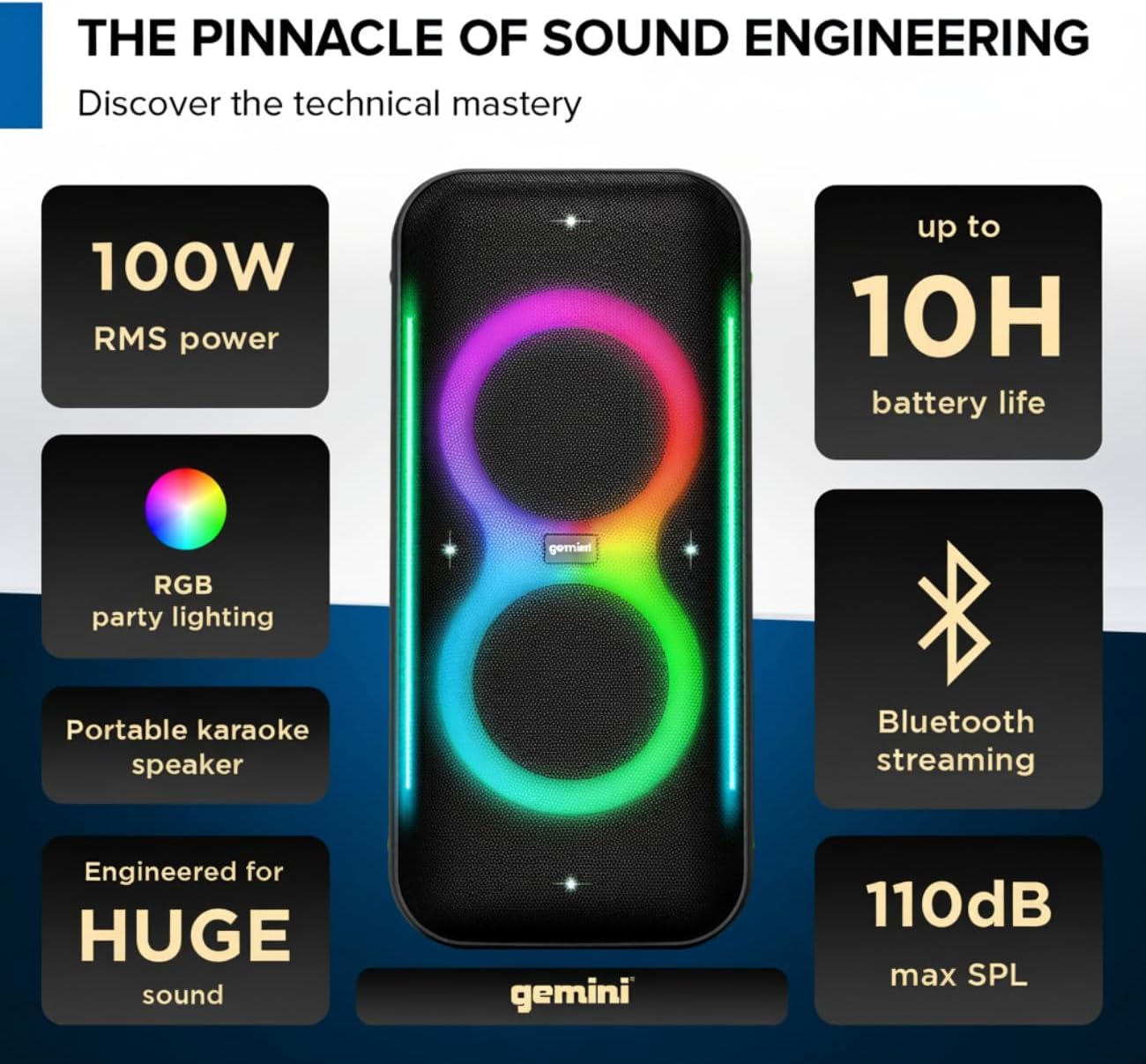 | Audio Input | Bluetooth, AUX, USB, FM Radio, Wireless Microphone |