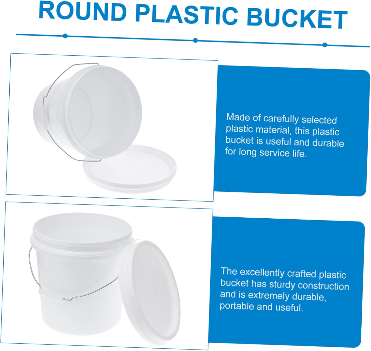 Package List 1 x plastic bucket with handle Features - Capacity: 10L(3 gallon) bucket for water. - Material: Plastic water buckets. - Size: 27.00X27.00X26.00cm/10.61X10.61X10.22in tote bucket - Color: White bucket with lid. - High-end material, flexibility and excellent durability, easy to use, for water pail. - Strong and stable structure, smooth surface, not worry about hurting your hands cleaning bucket. - This plastic bucket is and multi-functional, perfect for water bucket, fishing bucket and paint bucket bucket container for cleaning supplies. - Good workmanship, small size, delicate and useful for storage use, and reliable for you storage bucket with handle. - This bucket is designed with handle, portable and useful, which is convenient for US to carry portable bucket.Goods Informationwide buckets It is easy to use and bring you much convenience.bucket Adopted of plastic material, it is and for long time use.plastic pail That's because our product can meet your need.bucket with lid If you are looking for and plastic bucket, then your research is over here