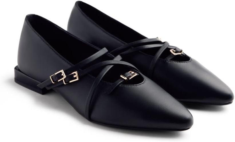 Leather ballet flats with straps and buckles. Sharp sole. With padded footbed and adjustable instep closures. Heel height: 1.5 cm. Product type: Ballet flats Main material: Leather. Composition: leather and polyurethane lining. - Leather shaft and sole. - Flexible TPR sole.