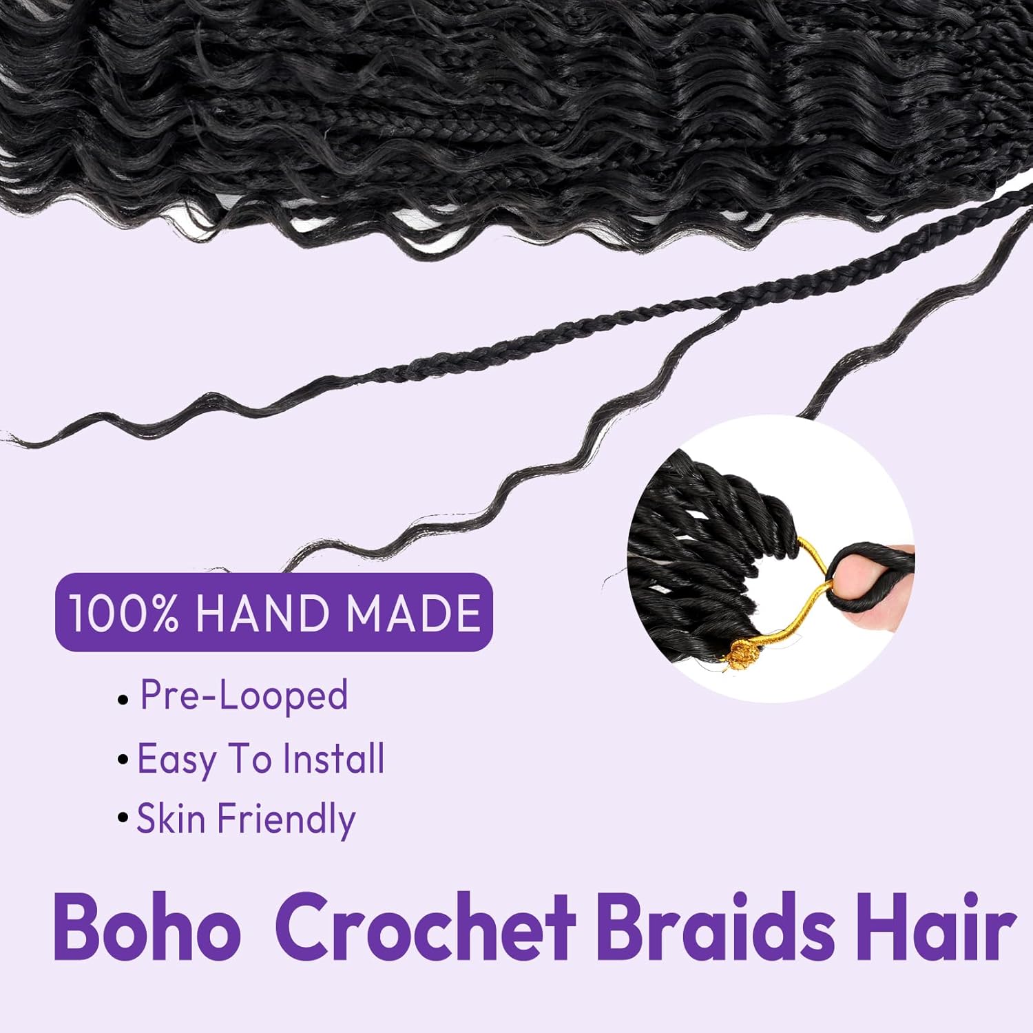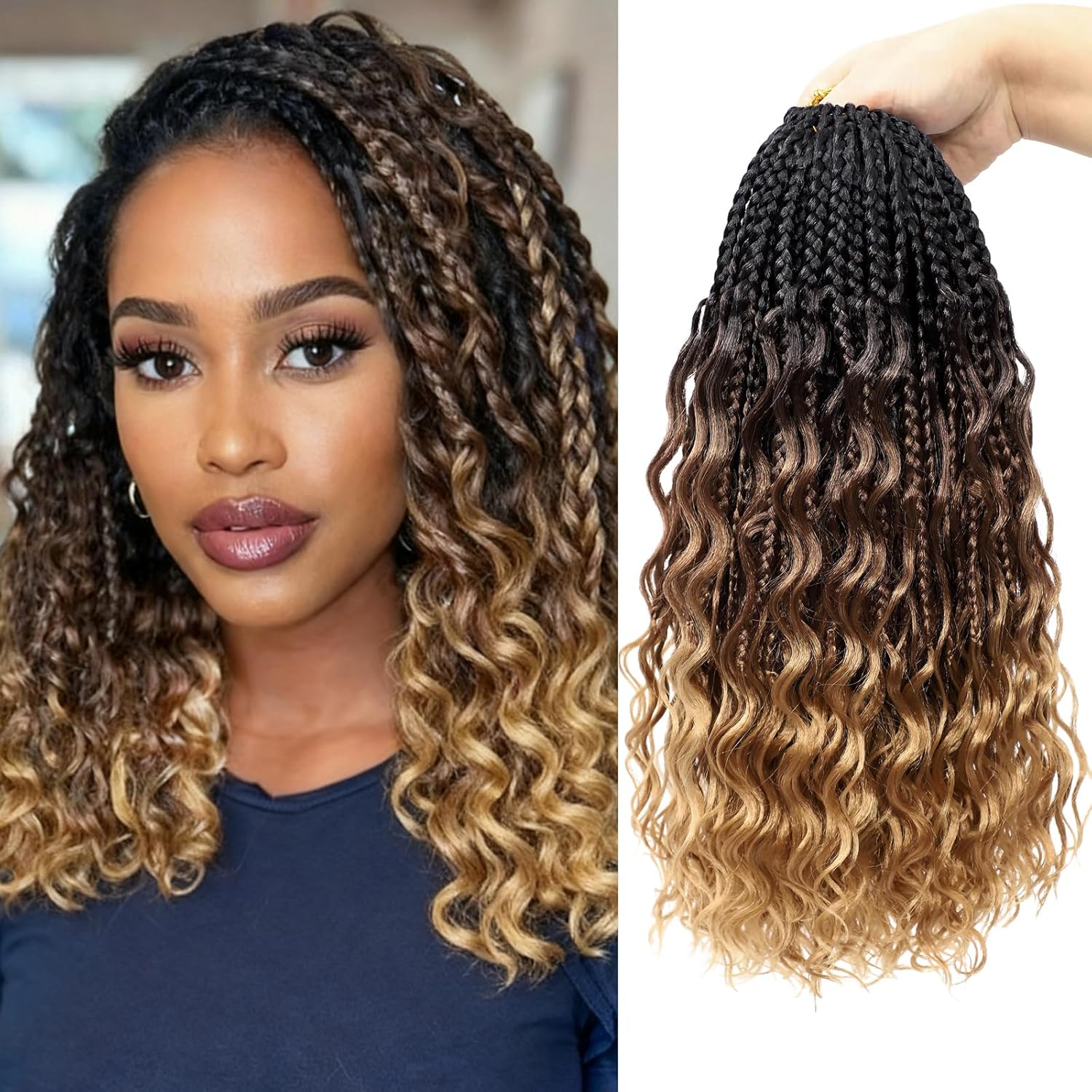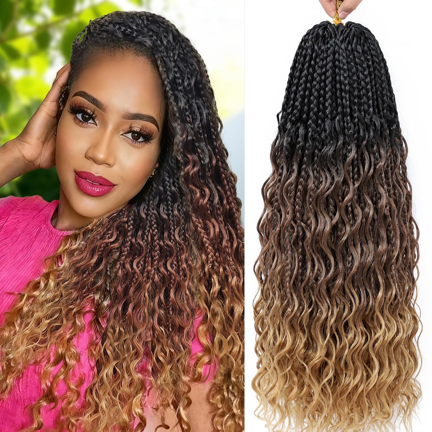 Goddess Box Braids Crochet Hair Material: 100% handmade 3X crochet braids for black women, made of high quality temperature synthetic fiber, Smooth and Soft,not easily to tangle and No Smell, Lightweight and Natural Looking, So Pretty and Very Comfortable . Package include 7 Packs goddess box braids crochet hair, 14strands/Pack, usually 7packs can do a full head. Length: 14inch, 18inch, 24inch. Different Colors Available for Making Choice,the Color is Beautiful and Natural.Color: 1B#, 27#,30#,T27#, T30#, T350#,TBUG#, BUG#, 1B/30/27#, 1B/30/613#, 1B/4/30#. Including a crochet needle & some rings. Advantages about Box braids crochet hair: Box braids crochet hair is pre-looped and pre-twisted, easy to pull the box braids through,so easy to install,friendly to beginner.Upgrade Crochet Braids with Curly Ends are effectively preventing tangles and making hair look more neat and natural. no tangle, not easy to separate ,Suitable for girls, kids, women of all ages, especially for beginners,Box Braids are Beautifully Braided suitable for daily use, party, cosplay, wedding, the outdoors, swimming, travel, gift choice Crochet Hair Warm Tips: Be careful when puling hair through the loop to avoid tangling. When sleeping,wear a satin scarf or hat. A touch of mousse keeps them looking wonderful. The crochet hair can last for a long time with Proper Care