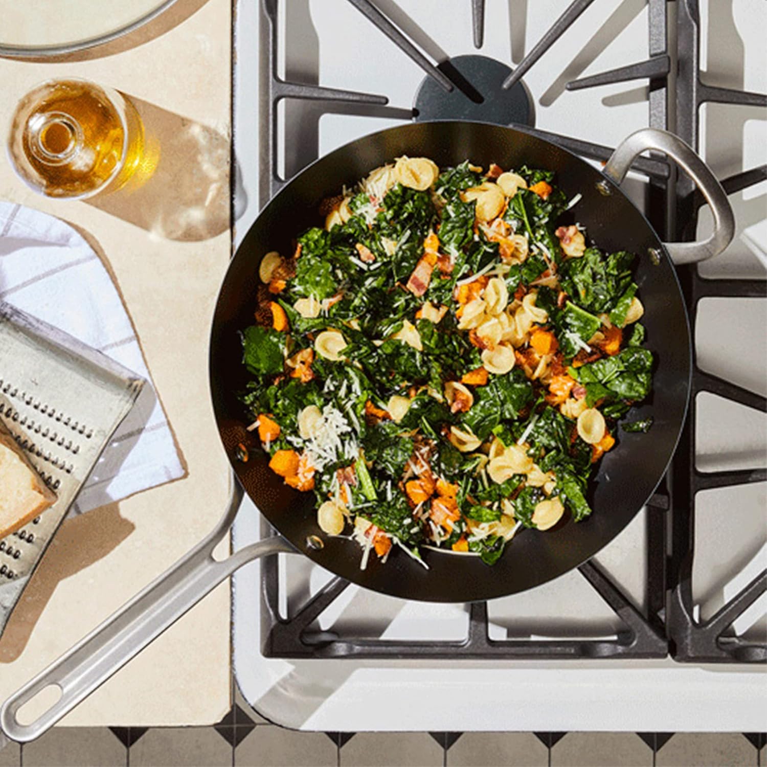 The choice of professionals, this carbon steel wok has all the bells and whistles you need to make perfect stir-fry, steam veggies, and so much more. Pre-seasoned to get you started right away, this pan will develop a natural nonstick patina with use—the more you use it, the more nonstick it will get. Endlessly versatile, this multipurpose pan features a foldable steel rack that expands your cooking options. Great for smoking, roasting, steaming, and more, this pan is endlessly versatile. Oven safe up to 660˚F, lid up to 425˚F. For all stovetops, grills, and direct heat. Hand wash only.