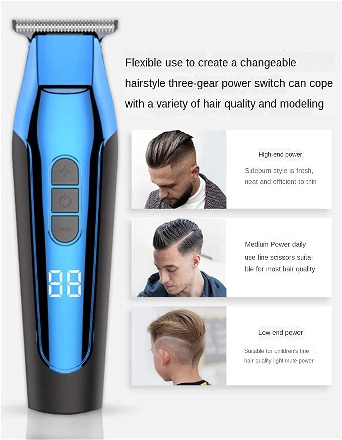Product name: electric clippersProduct size: 45mmX1 50mmBlade material: Titanium ceramic bladeCharging method: USB chargingStandby time: about 3 hoursStandby timePlug-in use: support plug-in use