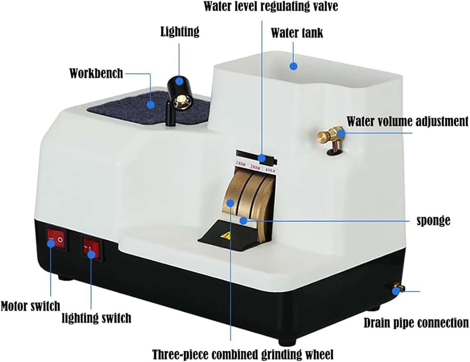 Product Description: The Optical Lens Hand Edger Manual Eyeglasses Lens Grinder is designed to provide precise grinding and shaping of eyeglass lenses. With its adjustable settings and three grinding wheels, it allows for accurate customization of lens shapes. Our lens grinder is suitable for plastic, glass, and resin lenses, catering to diverse eyewear needs. Whether you're an optician, eyeglass manufacturer, or individual, this tool is essential for crafting tailored lenses. Specification: Product Name: Optical Hand Lens Edger Grinding Wheel material: diamond Grinding Wheel Size:18mm/15mm/10mm Product Size:34*20*22cm Package Size:28.5*22.4*38cm Product Weight:5.1kg Wheel Speed:4200r/min Power Supply:AC -50Hz Power:90W Packing list: Host*1 Power Cord*1 Instruction Manual*1 Warm Tip: 1. Please allow 1-2cm difference due to manual measurement.