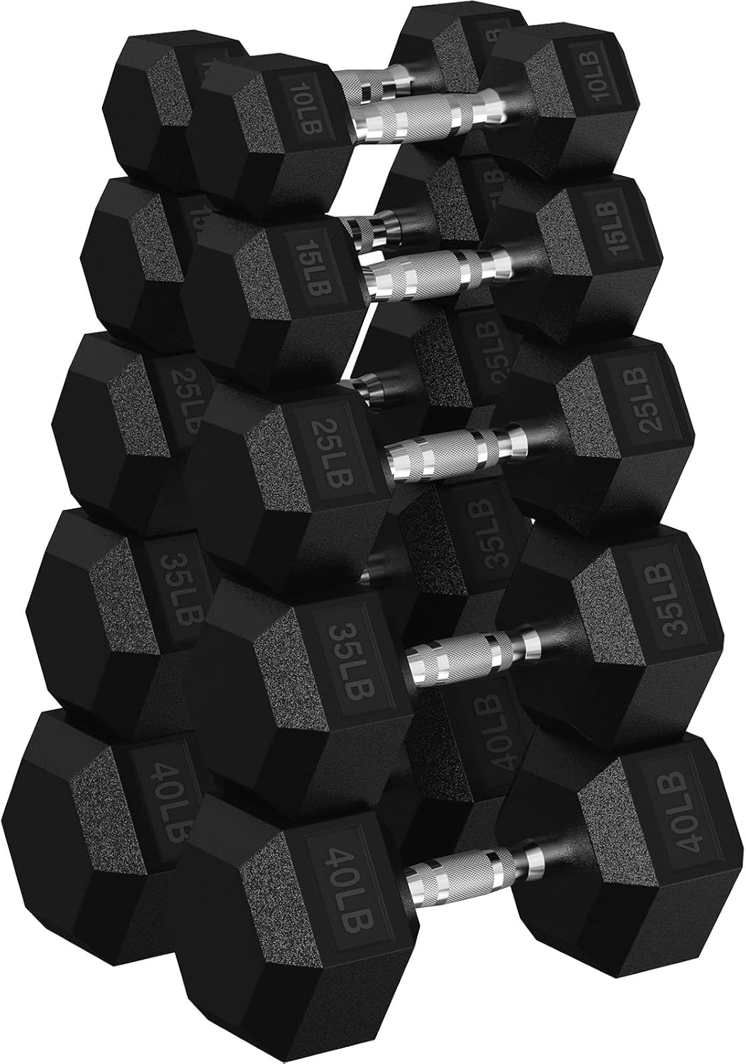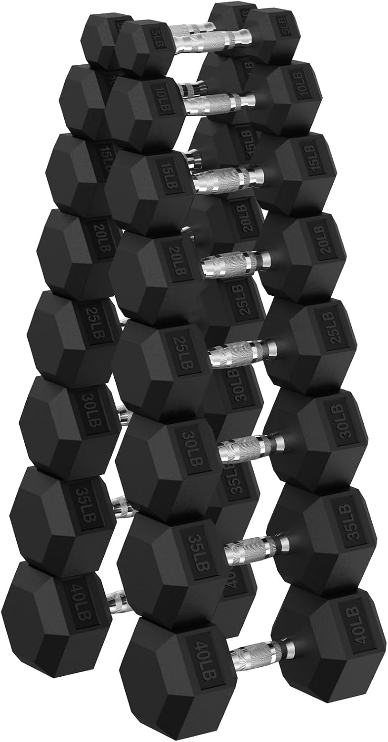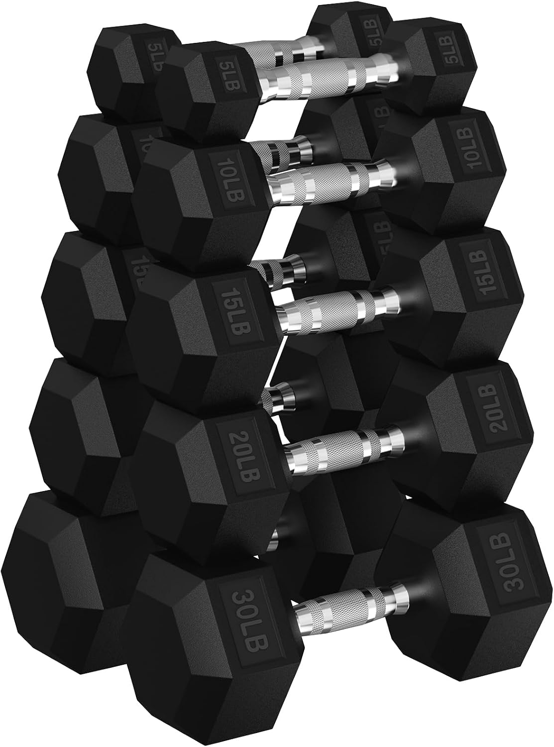 HANDBODE Hex Dumbbell Rubber Hex Dumbbells are one of the most versatile pieces of strength equipment you could have in your home gym, they allow you to focus on every muscle group in your body, and provide an efficient workout in any space. The ergonomic handles are chrome plated, provide protection from corrosion. Rubber head helps prevent damage to flooring or exercise mats Hexagon-shaped head is ideal for workouts ranging from traditional strength training to bodybuilding. Great for circuit training, provides a stable foundation for exercises like dumbbell plank rows and pushups. 5 Advantages Of Dumbbells 1. Increased Stabilisation and Muscle Activation. 2. Identifies and Eliminates Strength Imbalances. 3. Better Awareness About Injury Prevention. 4. More Freedom of Movement. 5. Versatile and Effective. Note:It is normal to have some oil on dumbbell to prevent it from oxidizing.The New Rubber Dumbbell do have some rubber smell, the odor will dissipate after a period of time.