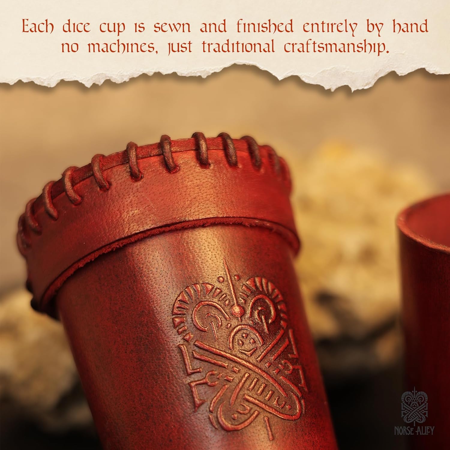 Bring an authentic medieval flair to your game nights with this handmade leather dice cup, meticulously crafted from thick vegetable-tanned buffalo leather. Every stitch is done entirely by hand, making each piece unique and durable — ideal for tabletop RPGs, reenactments, and historical events. Measurements: Height: 10 cm (3.94 inches) Width: Top – 7.5 cm (2.95 inches) Base – 6 cm (2.36 inches) Breadth: 6 cm (2.36 inches) Thickness: Approx. 2–3 mm (0.08–0.12 inches) Circumference: Top – 25 cm (9.84 inches) Base – 21.5 cm (8.46 inches) Weight: Approx. 50 g (0.11 lbs) 📦 Delivery Includes: This listing is for the leather dice beaker only – dice are NOT included. Matching handcrafted bone dice are available separately in our shop.