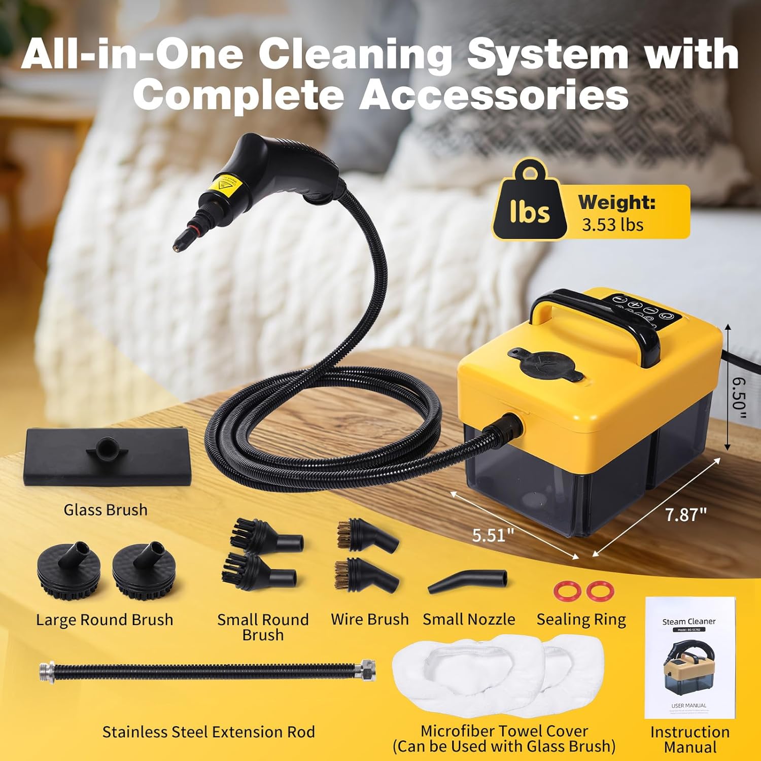 | Special Features | 15S Fast Heating and 1.6L Water Capacity, 3.5 Bar High Pressure and 221°F Max Steam Temperature, 6 Steam Levels and Flush Mode, Auto Shut-off After 10 min and Water Shortage Indicator, Hose Length 86.61 inches and Power Cord Length 73.62 inches |