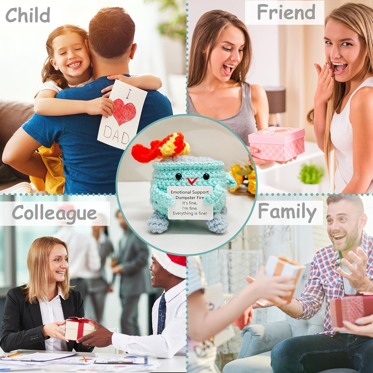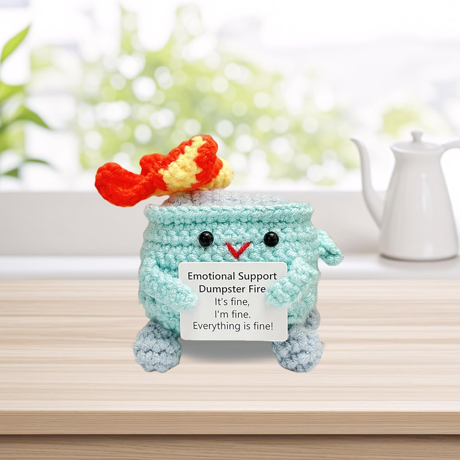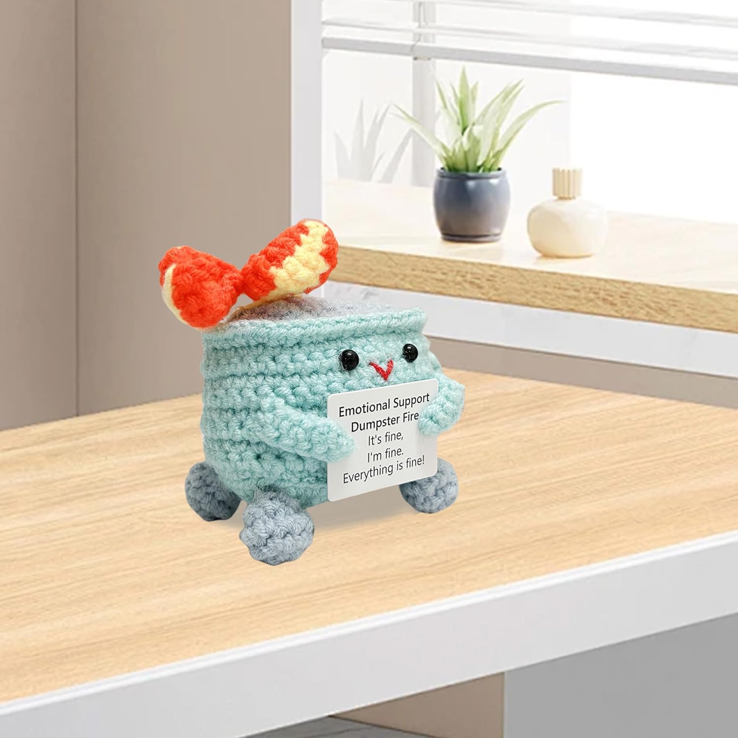 The Crochet Blue Dumpster Fire brings a lighthearted twist to life’s chaotic moments, this time in a cool, calming blue hue. This handmade crochet piece is a unique and humorous addition to any room or workspace, serving as a fun reminder that even when things go wrong, they can still be adorable. Whether as a gift or for personal enjoyment, this blue dumpster fire is a quirky, memorable decoration that sparks joy in the midst of chaos. Features Material: Made from soft, high-quality yarn, this crochet dumpster fire is durable yet lightweight. The yarn used is eco-friendly, making it a sustainable choice for fans of handmade crafts. Design: This plush design features a bright blue dumpster with detailed stitching, from the textured body to the iconic flame element bursting out of the top. The flames, created in vivid shades of red, orange, and yellow, provide a striking contrast against the cool blue dumpster base. The face detail, with its wide, curious eyes, adds a playful touch to the entire design. Size: Measuring approximately 2.7 inches in height and 2.9 inches in width, this compact crochet creation is perfect for a variety of spaces, from office desks to home bookshelves. Care Instructions: Easy to clean—simply spot clean with a damp cloth to keep the colors vibrant and the shape intact. Its sturdy stitching ensures it holds up over time without losing its charm. Usage Suggestions 1. Desk Décor: Brighten up your workspace with this quirky, handcrafted reminder to take life’s chaos lightly. 2. Gift: Ideal as a funny and memorable gift for birthdays, office parties, or to cheer up a friend going through a tough time. 3. Living Room Display: Add a fun, whimsical touch to your living room shelf, mantel, or coffee table. 4. Office Humor: Perfect for sparking conversations and lightening the mood in a work environment. 5. Dorm Room Decoration: Add personality to your dorm with this playful, soft décor item. 6. Stress Reliever: Soft and squeezable, this crochet dumpster fire is a great stress-relief toy for those moments when life feels like a mess. 7. Collectible: A must-have for collectors of handmade or novelty crochet items. 8. Social Media Prop: Use it as a funny prop in photos or videos to entertain your followers with its quirky design. 9. Party Favor: A humorous and unique decoration for parties, especially for themed events. 10. Home Office Companion: Place it on your work-from-home desk as a cute reminder to find humor in difficult situations. Perfect For Fans of quirky and humorous décor. Friends and family who appreciate handmade, one-of-a-kind gifts. Collectors of crochet art and novelty items. The Crochet Blue Dumpster Fire combines craftsmanship, humor, and a dash of whimsy, making it a delightful addition to any space. Whether it’s a light-hearted joke or a unique gift, this little blue dumpster fire is sure to bring smiles to anyone who sees it!