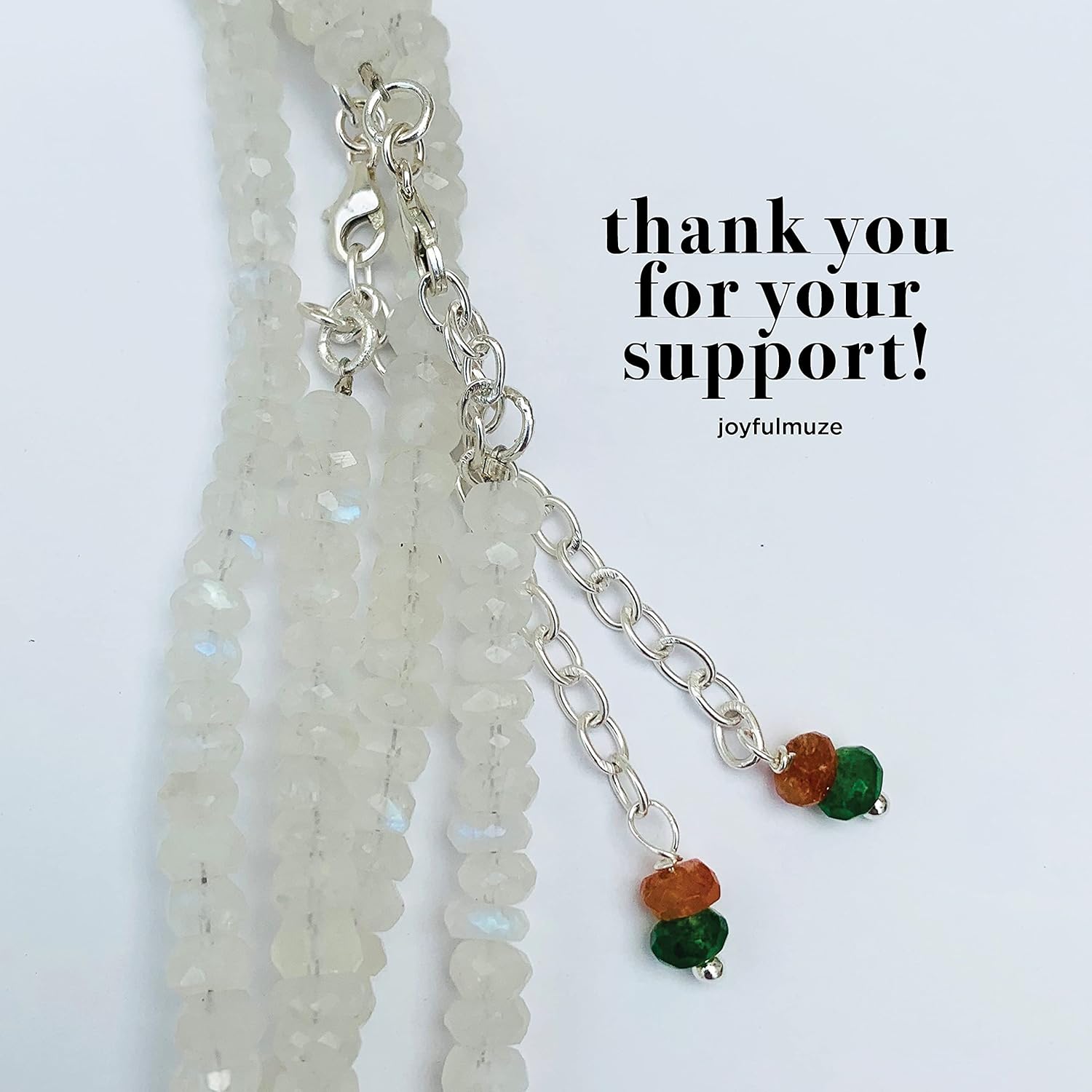 Why Choose Joyfulmuze Jewelry? Not only are you supporting a local artist but you are also buying original high-quality handmade jewelry. My beads are ethically sourced from Fair Trade suppliers so that you can love how your jewelry looks, and how it's made. Joyfulmuze harnesses the untouched natural beauty of precious stones to create simple designs for everyday. I believe less is more and this approach I apply for my handmade jewelry. Vivid two row wrap bracelet or choker necklace with genuine faceted Tourmaline gemstones creating an ombré rainbow effect. These watermelon tourmaline have a beautiful range of rich colors: pinks, greens, golds & pastels, and super-fine faceting! Colorful tourmalines relieve tension and encourage prosperity, tolerance and inspiration. Key Product Features October Birthstone Gold Plated Lobster clasp fastening Natural Rainbow Tourmaline Rich dark colors Hand faceted roundels 4-5mm Necklace length 13 inches plus 3 inches extender 1pc per box Unique Design: This watermelon colors Tourmaline crystal necklace is unique. When you wear it, it promotes beauty, health, good luck, and healing. No two pieces of our jewelry are identical and the differences add to the uniqueness.
