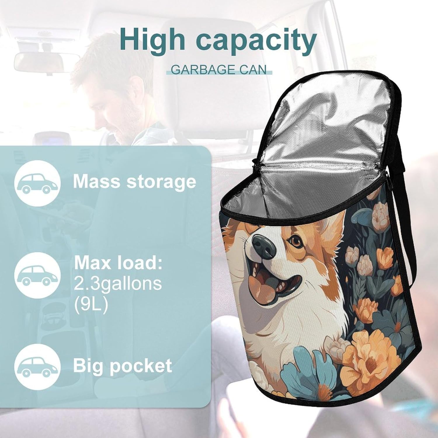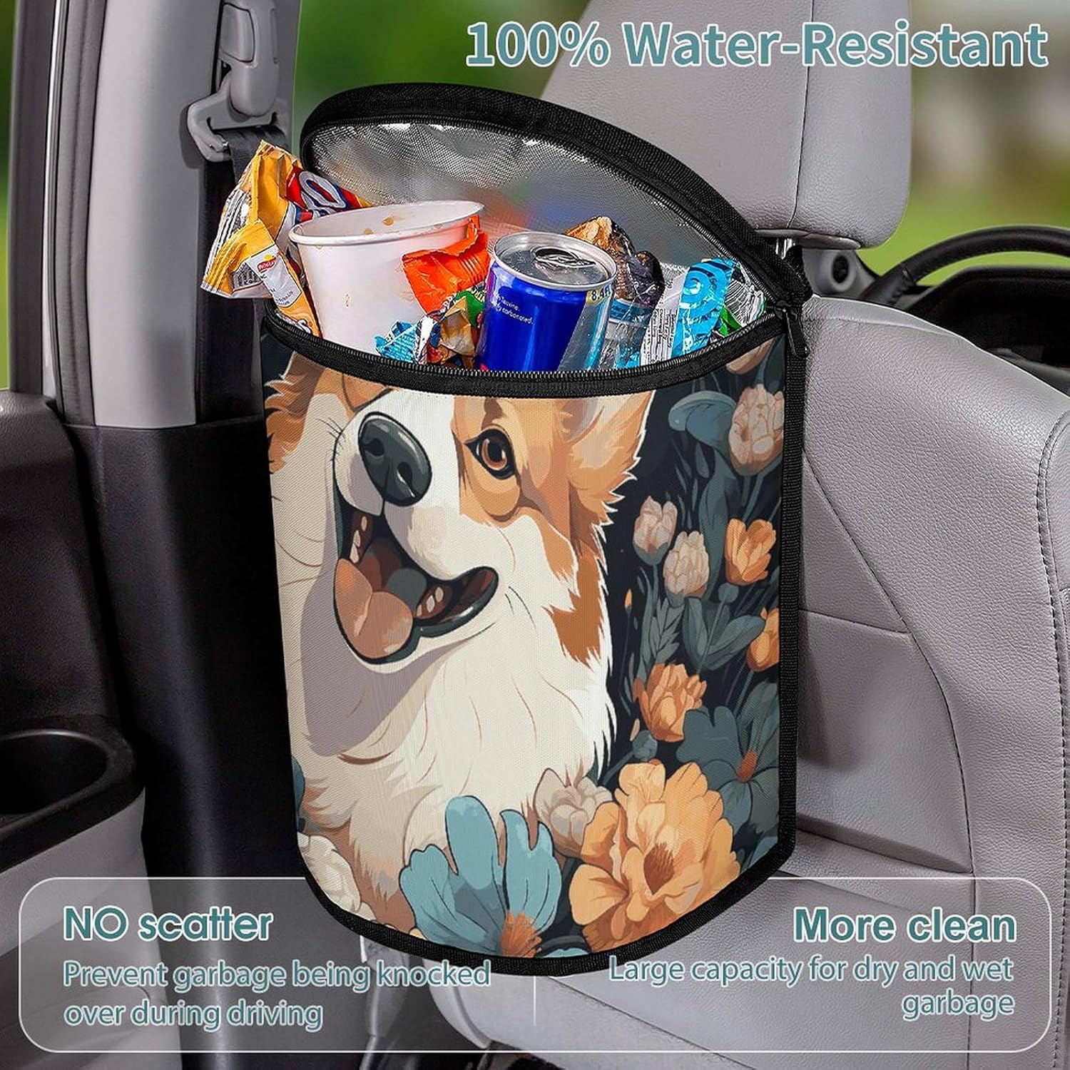 This stylish garbage bag storage bag features a built-in waterproof and leak-proof lining,effectively protecting the trash can and your car from beverage and grease stainsThe appearance design of car trash cans with lids is becoming more and more beautiful and fashionable. It is not only practical, but also adds a sense of decoration to the car