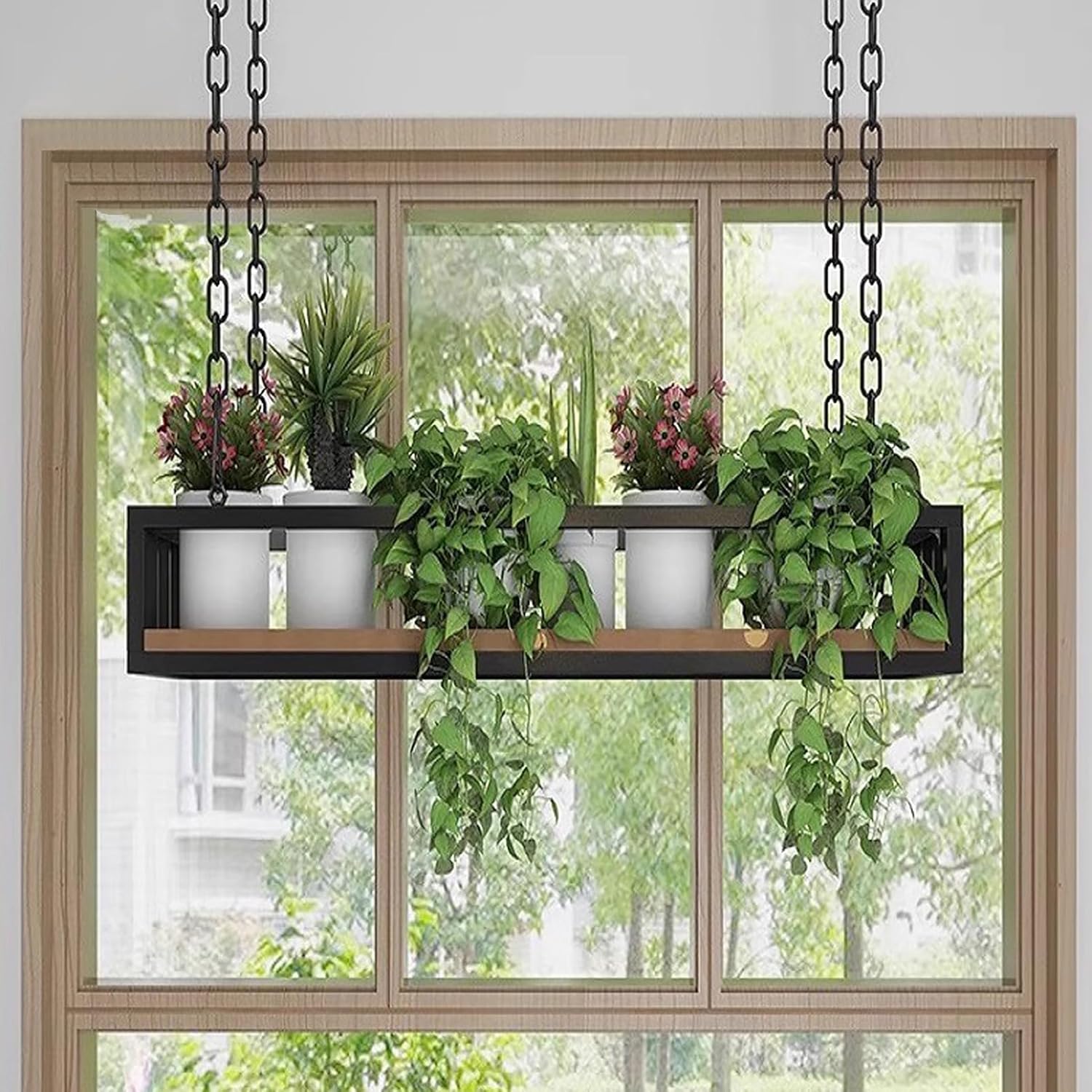 This metal hanging storage rack can refresh your home. The simple and clean design can enhance the decoration of any room. The sturdy structure, easy installation and elegant design makes this a great addition to your home. They are a great way to display a collection and make a special gift for family or friends.Specifications:Name: Ceiling flower rack/shelf/storage rack/wine rackStyle: Modern RetroMaterial: Metal and Solid WoodStorage Space: 1 TiersApplicable places: Families, bars, cafes, hotels, restaurants, offices, kitchen, commercial cellars and various clubsNote:1. Decorative items shown in product photos are not included.2. Due to different measurement methods, there may be an error of 1 - 2 cm, please refer to the actual product.3. Shooting in different environments, the display is somewhat different, there will be some color difference, please prevail in kind.4. If you need help, please contact us by email, we will reply you within 24 hours and wish you a happy life.