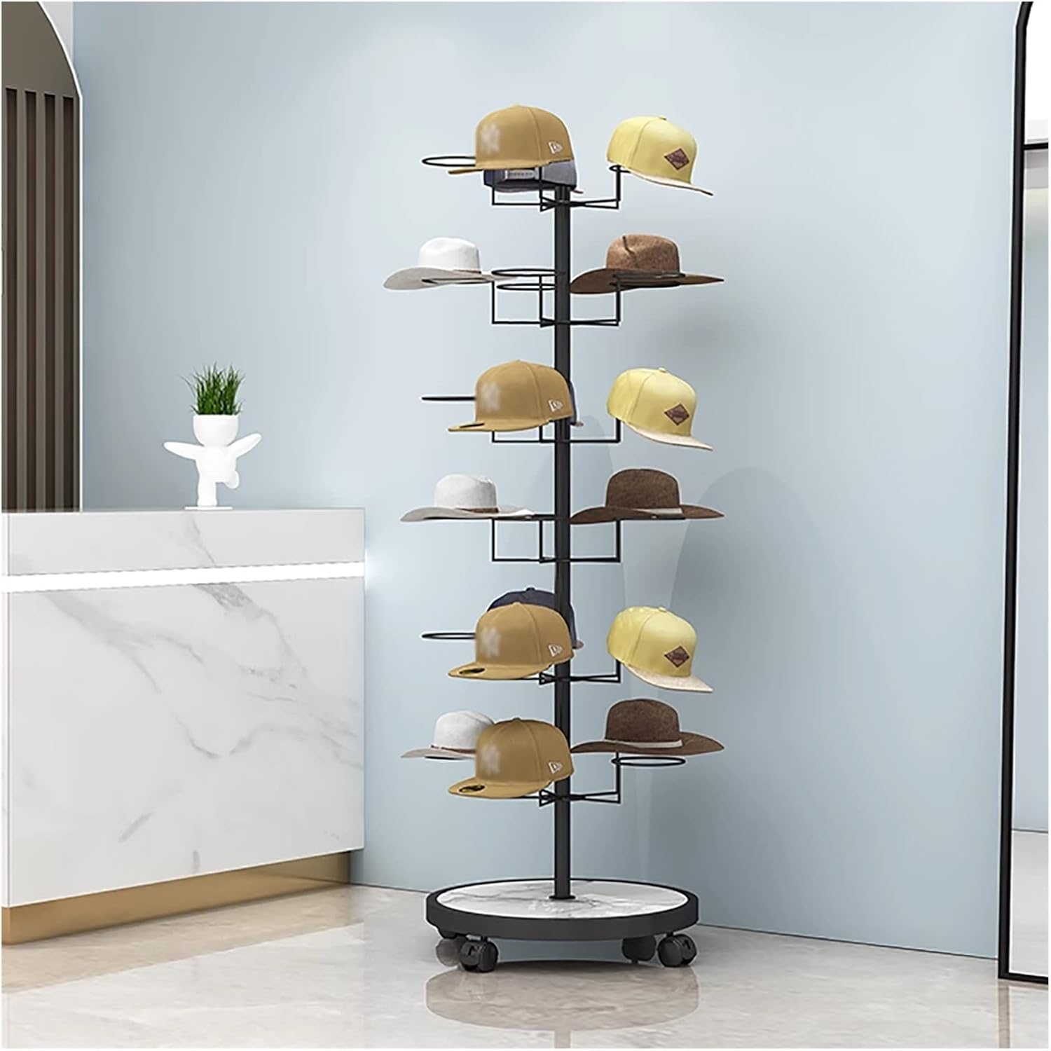 Hat Rack Description: Declutter and organize your hat collection. With this eye-catching display stand, you can give your selection of retail hats and wigs all the modern style and elegance it deserves. Ready to show off your favorite accessories and bring modern style to your boutique This chic hat rack is just what you need. Parameters: Material: Metal Iron Style: Contemporary Color: Gold Height: 6 tier: 165cm/67in Hat Rack Diameter: 13cm/1inch Usage Areas: Home, Store, Office, Bedroom, Entryway, Hotel, etc. Features 4 casters, which can be moved flexibly. Solid metal base, has strong load-bearing capacity. Comes with hoops to store all different types of hats. takes up a small area to display and store your hats. Using in your store, business, office, warehouse or storage suitable. The polished finish on the surface makes this product waterproof, rust-proof, and easy to wipe and clean. Package : 1 x Hat Racks(Not include hats)