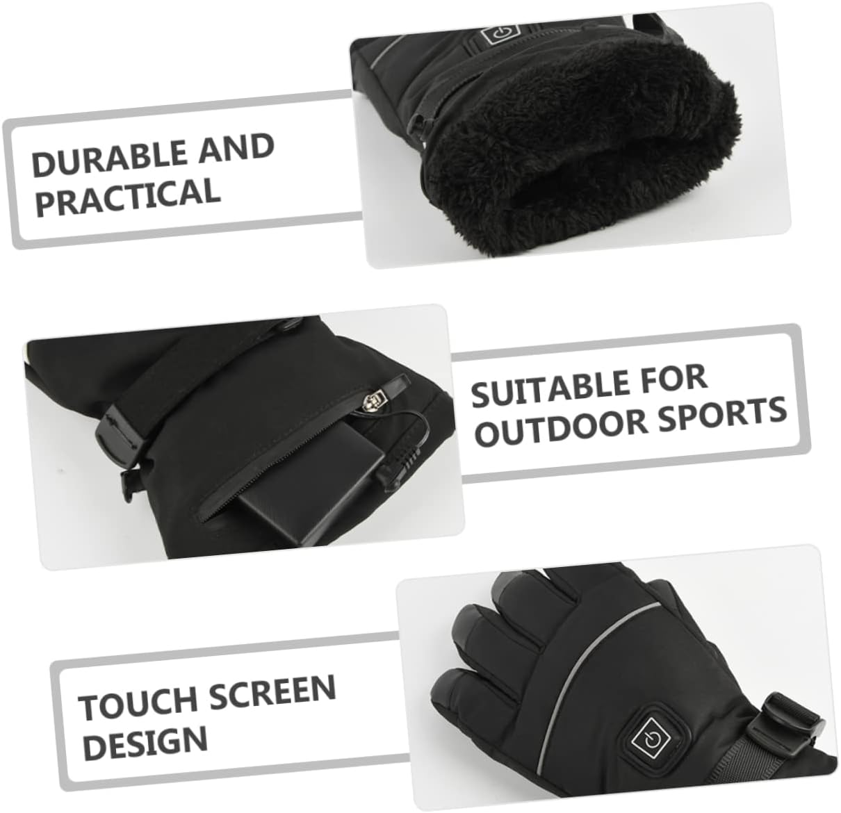 Package List 1 pair x gloves Features -Size: 30.00X13.00X3.50cm/11.79X5.11X1.38in heated motorcycle gloves -Material:Plush, PU leather motorcycle gloves -Color:Black heated gloves for women - Power supply: 6 x AAA batteries(Not included). heated gloves motorcycle - The gloves have strong warmth preservation ability and the heat can be kept for a long time heated work gloves. - Made of plush and PU leather, offers excellent flexibility to ensure your hands and fingers to move. winter motorcycle gloves - It provides a wide heating area covering your hand in case of cold weather, simply for more comfort and warmth battery heated gloves. - You can give it to your lover and friends as a warm present on birthday party, anniversary, New Year heated motorcycle gloves for men. - for a variety of outdoor sports in cold days, running, cycling, hiking, fishing, hunting etc thermal gloves men.Goods Descriptionwomens heated gloves High heating temperature, rapid heating, with a , safe and reliable to use.heated gloves for women With them, will accompany your family and friends and bring them warmth.winter motorcycle gloves The gloves can keep your hands warm and dry when you go out