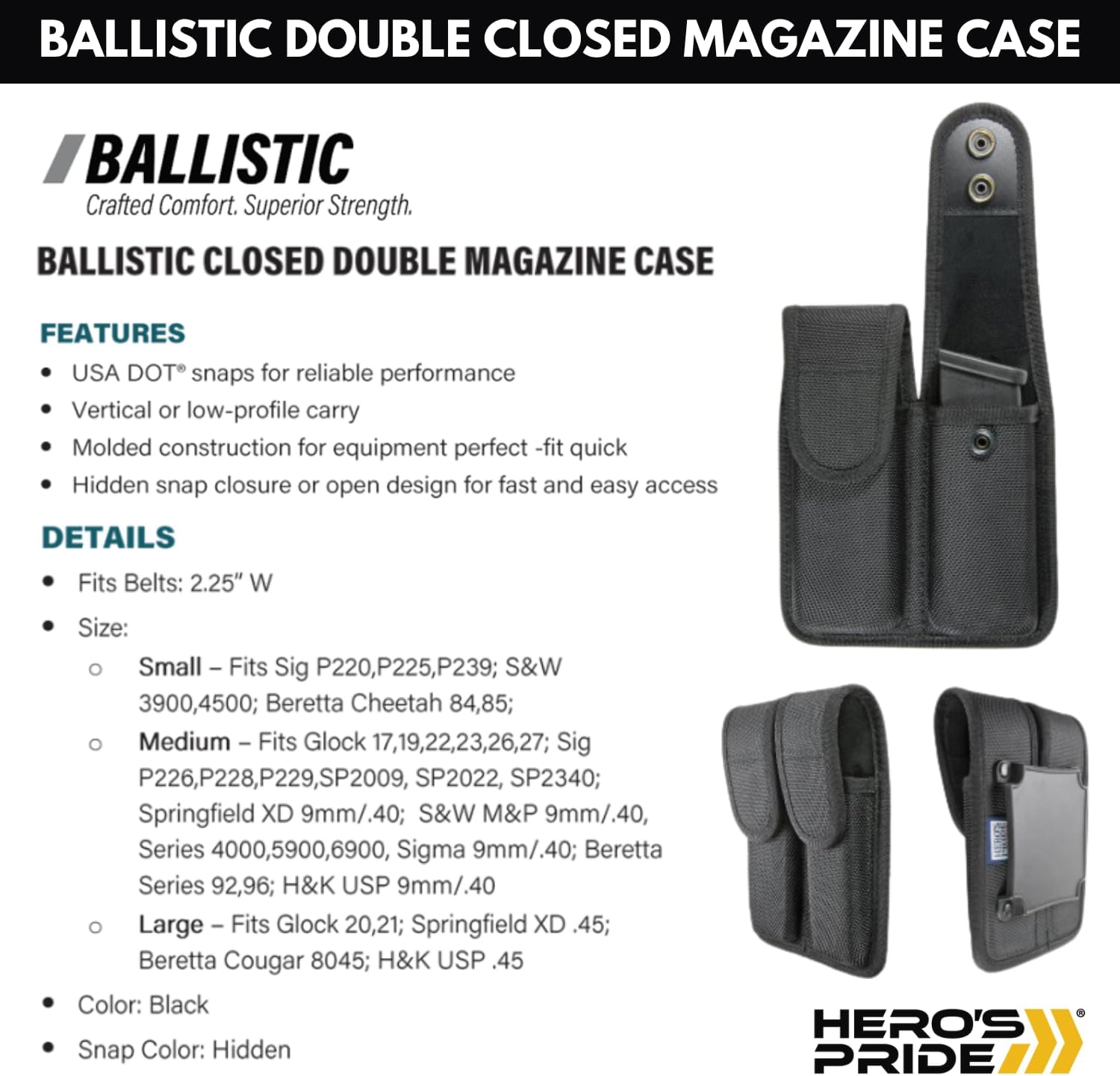 This Ballistic Open Double Magazine Case is a lightweight magazine case with an open design ideal for security and law enforcement personnel who needs to quickly access their ammunition. Made from durable materials and finish that complements any law enforcement requirements. 1680 denier ballistic material for lightweight comfort. Open design for fast access.