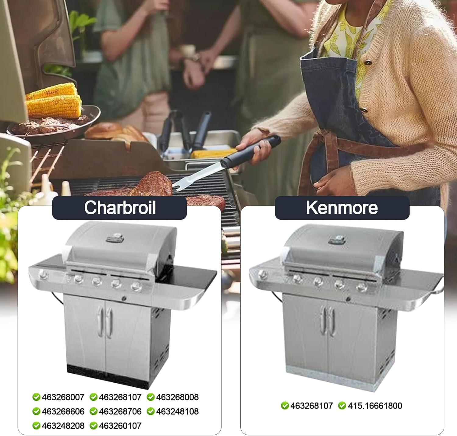 ♥ Good quality♥ Great value♥ Works & well built♥ Perfect fit for my old Char-broil ☞Grill Parts Dimension- Heat Shield: 16" x 3-13/16"- Burner Tube: 15-7/8" x 1"- Carryover Tube: adjust from 5" - 9.5"☞Grill Parts Material- Heat Shield: Stainless Steel- Burner Tube: Stainless Steel- Carryover Tube: Stainless Steel☞Grill Parts Package- 4Pcs Heat Shields, 4Pcs Pipe Burner Tubes and 3Pcs Carryover Tubes☞Grill Replacement Parts For✔【For Charbroil Grill Parts Models】463268007, 463268107, 463268008, 463268606, 463268706, 463248108, 463248208, 463260107, 463261107, 463260707, 463260207, 463261007, 463261607, 463264407, 466248108, 466248208, 466268008.✔【For Kenmore Grill Parts Models】 463268107, 415.166618.Notes: The listed models are just for reference, please double measure the size of your original parts and compare with ours before ordering. If you have any question, please feel free to contact us.