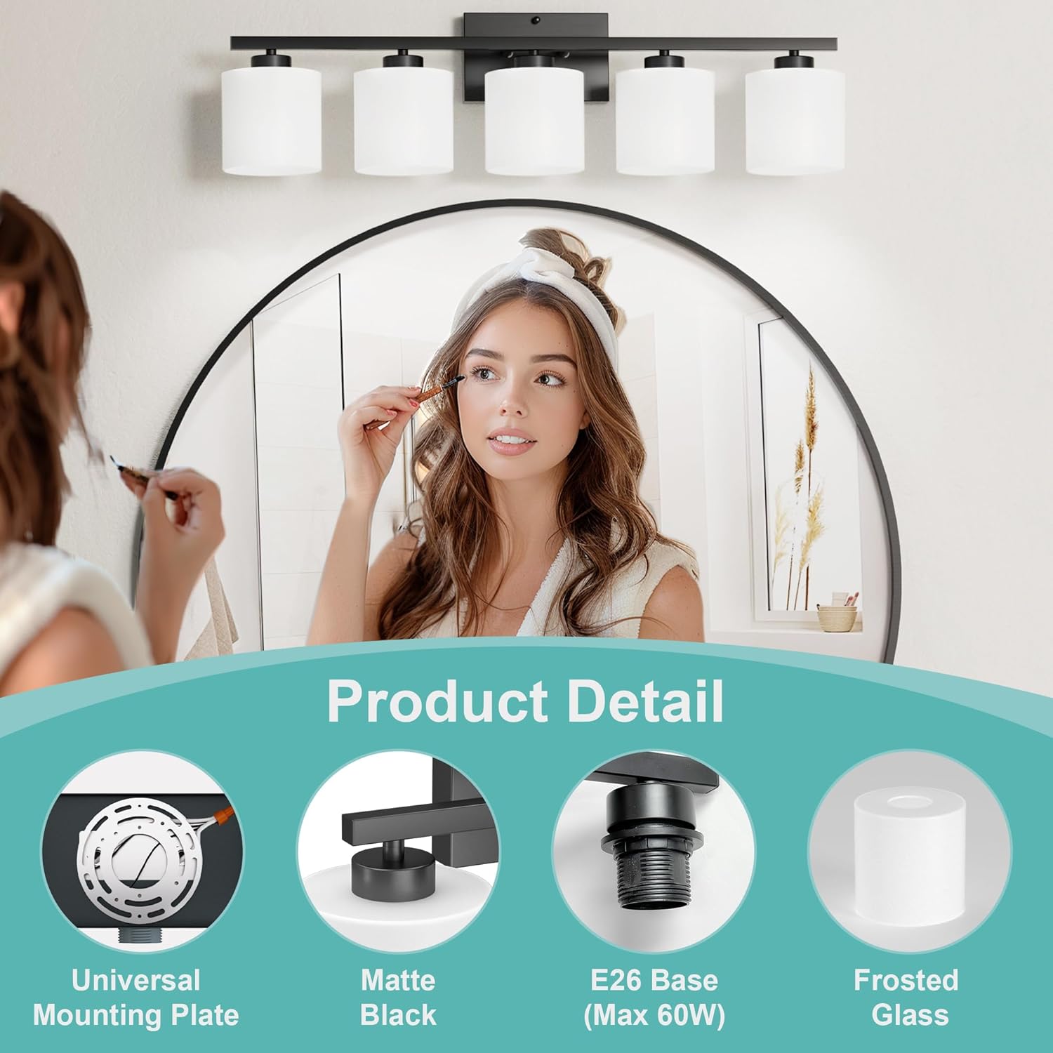 | Included Components | 30 Inches Black Bathroom Lighrt Fixtures 5-Light, Frosted Glass Lampshades, Instruction Manual, Tool Kits |