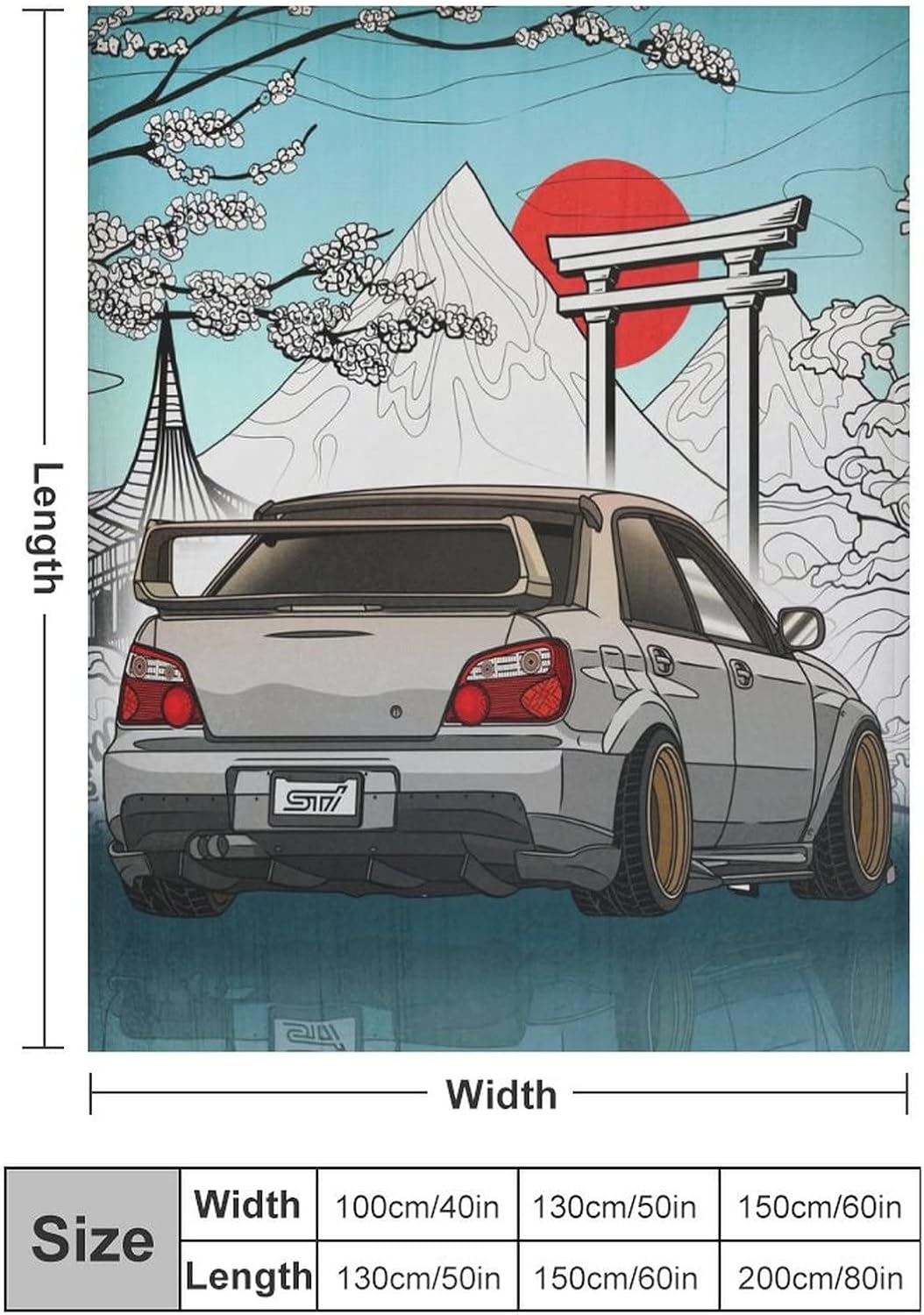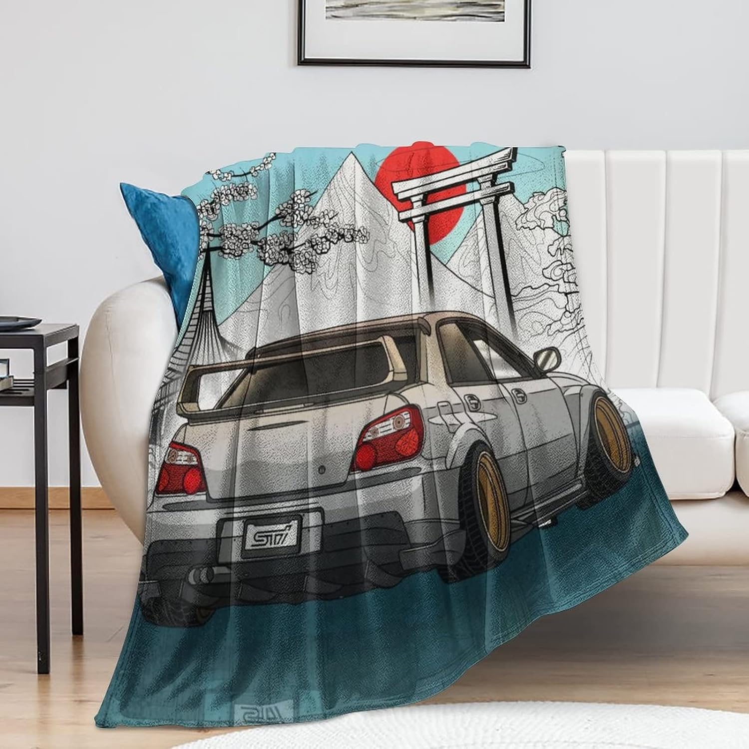 Impreza WRX Sti Art JDM Car Japan Fuji Temple Sunset Blanket Super Soft Flannel Lightweight Cooling Blankets for Boys and Girls Flannel Soft Bedding 60"*80"(150 * 200cm)