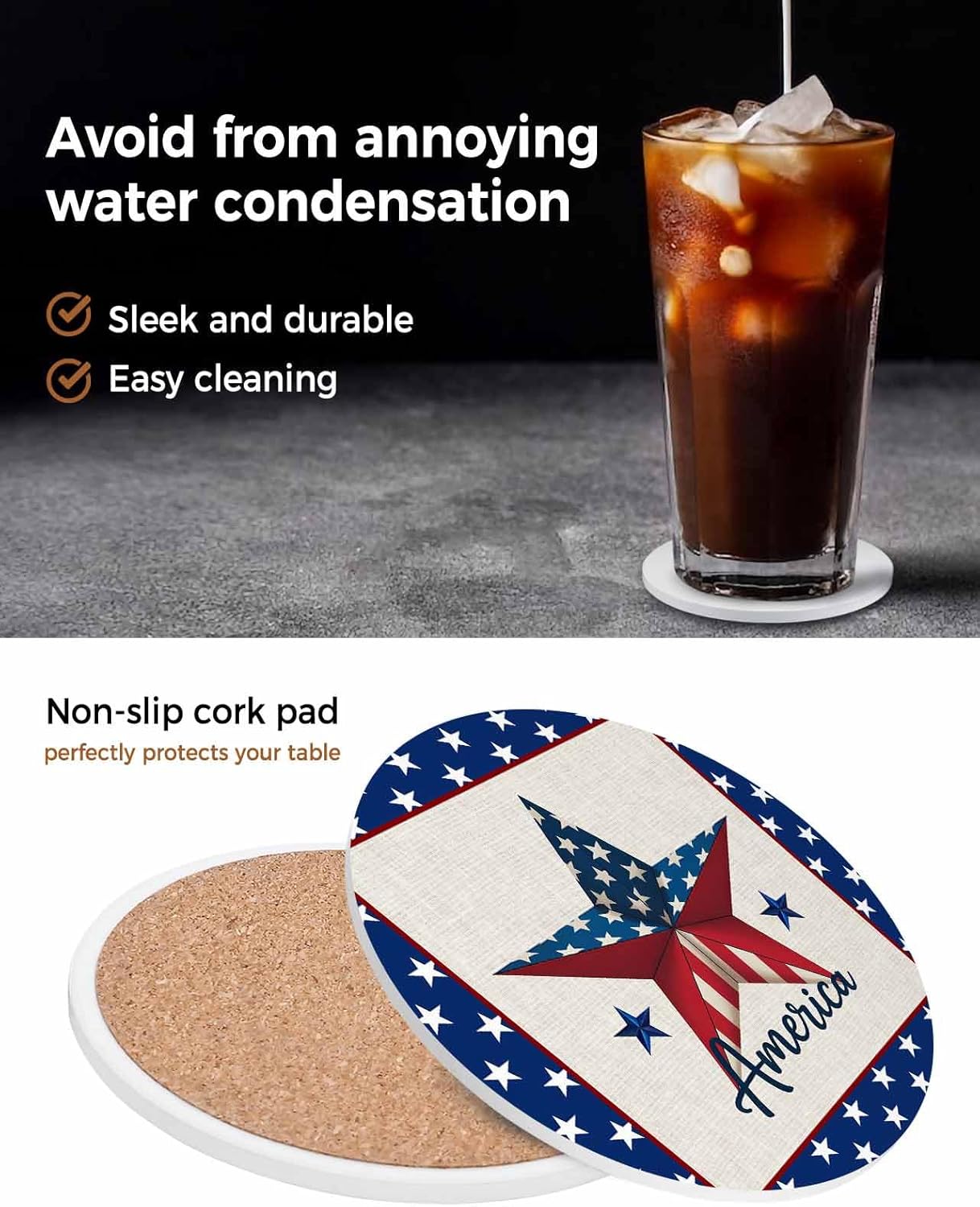 Tired of Water Rings Damaging Your FurnitureSay Goodbye to Spills with Our Dual-Material Absorbent Cup CoastersSearching for funny cute coasters that are both functional and stylishOur ceramic & cork round drink coasters set combines two timeless materials into one versatile package, offering protection and elegance for every surface and occasion.Why Choose Cup CoastersCrafted from ceramic and cork, these absorbent coasters for drinks provide sleek, non-porous surfaces that absorb water instantly, minimizing water marks on your tables and countertops.Ceramic car coasters's design ensures stability, even when holding hot mugs or heavy glasses.Much lighter than stone coasters, this coffee coasters for women men combines the excellent absorbency of ceramic with the quick-drying, ultra-light qualities of cork—making it ideal for busy homes and outdoor areas.The modern coasters won't crack easily, odorsproof, and fits seamlessly in kitchens, patios, or family rooms.Design Meets PracticalityAesthetic coasters are suitable for everything from coffee mugs to oversized glasses.The classic round shape fits seamlessly into most decor styles, and the clean edges prevent scratching.They're easy to clean.Just rinse with water and let air dry—you'll never need harsh scrubbers or chemicals.Ideal for Every LifestyleThe furniture coasters for hardwood floors elevates any gathering with its refined look.Table coasters for drinks are rugged enough for outdoor use but still stylish enough for indoor tables.The multi-pack options work for small households or large families, and they make thoughtful gifts for new homeowners, housewarming parties, or holiday surprises.Ready to Upgrade Your SpaceExperience the ideal blend of elegance and practicality with this ceramic & cork drink coaster set—just what every home deserves