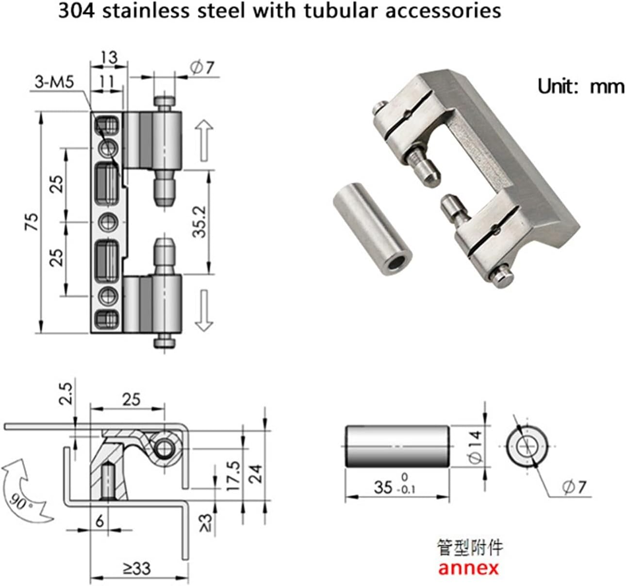 Hinges【See the second picture of the variant for detailed parameters】【See the second picture of the variant for detailed parameters】Industrial Heavy-Duty Machinery Equipment Cabinet Door Hinge Stainless Steel Or Zinc Alloy Detachable Hinge 1Pcs