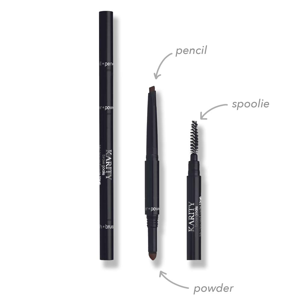 Our 3 in1 Brow Goals eyebrow pen was developed to help you create natural and flawless looking eyebrows. Featuring an angled pencil tip we chose, a tapered powder applicator, and a firm wired brush for precision and perfection, your eyebrows will look fuller, more defined and polished. Our specially designed spoolie creates precise strokes that naturally come together to form a beautiful eyebrow for any makeup look. No smudging Vegan No fading Easy to apply Cruelty-Free Sweatrproof Long Lasting Paraben-free Easy to remove