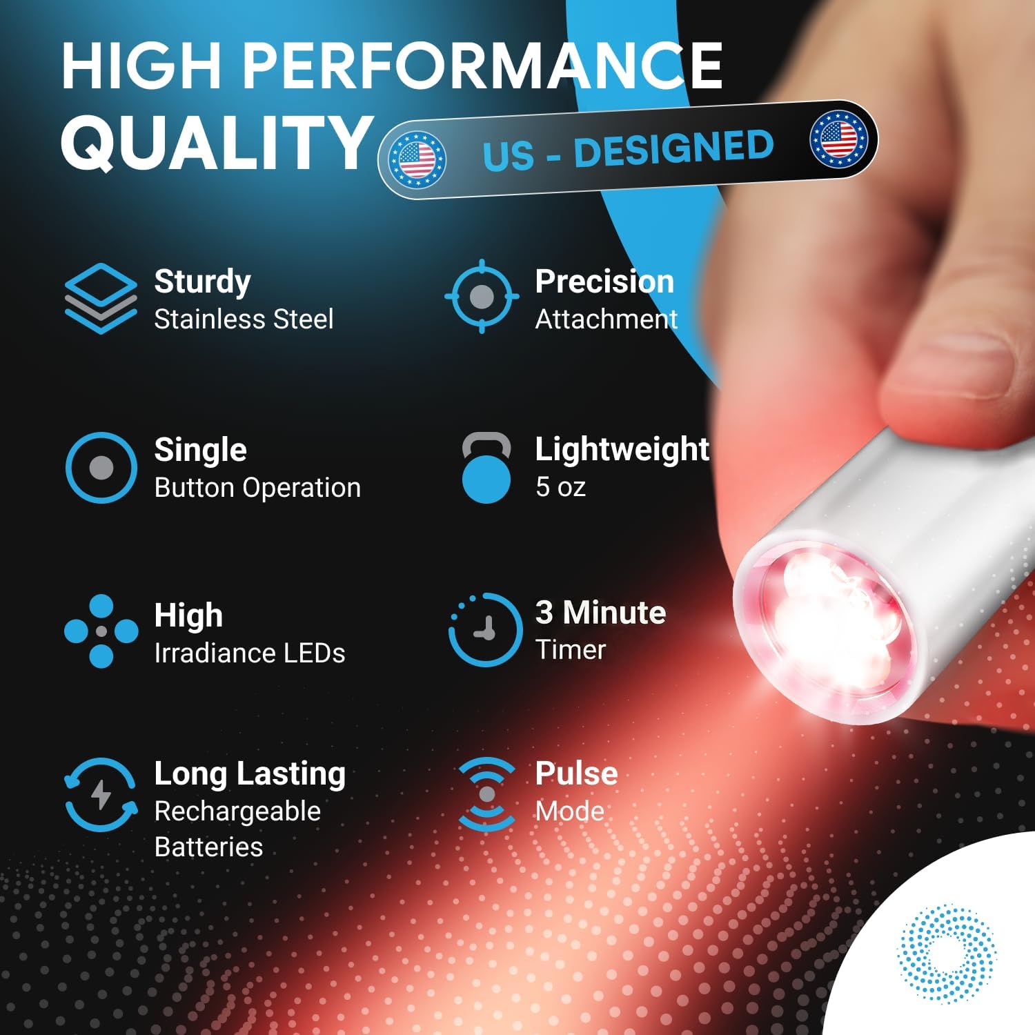 Specifications Material: Stainless SteelIrradiance: > 120 mW / cm2EMF (0 inch): 0 UTNet Weight: 4.8 oz (135 g)Wavelength: 460:630:660:850nmLifespan: 50,000 Hrs
