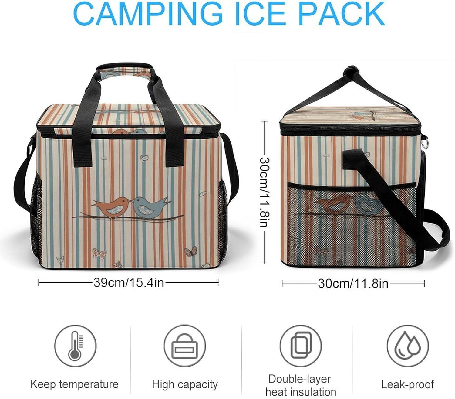 Take Your Meals Anywhere with Love Birdie Stripe Grocery BagsFood Container Carrier Oxford Fabric Picnic Bag Heat Retaining Food Bag Camping Cooler BBQ Accessories Cute Picnic Bag with Pockets Insulated Food Bag for Work Insulated Lunch Tote Bag Camping BagTemperature Control That WorksThe upgraded aluminum foil lining creates an effective thermal barrier. Your drinks stay refreshingly cold, and your hot dishes maintain their warmth for hours. No more lukewarm meals during outdoor outings.Thoughtful Storage DesignTwo side mesh pockets - Perfect for water bottles or umbrellasFront zippered pocket - Keeps keys, phone, or condiments organizedInternal mesh pocket - Stores utensils, napkins, and small essentialsMain compartment - Spacious enough for food containers and snacksBuilt for Daily AdventuresConstructed from high-density oxford fabric with reinforced stitching at stress points. The double zippers are sturdy and smooth-operating. Reinforced handles let you carry heavy loads with confidence.Carry Your WayHandles for quick grabbingStands upright for easy packing and accessPerfect For:Picnics in the parkBeach days and pool partiesCamping and hiking tripsOutdoor concerts and festivalsDaily work lunchesGym and fitness classesRoad trips and travelGrocery shoppingSpecifications:Dimensions: 15.4 x 11.8 x 11.8 inchesMaterial: High-density Oxford fabricLining: Aluminum foil (insulated)Closure: Sturdy double zippersPockets: 2 side mesh, 1 front zipper, 1 internal meshCare: Hand wash or machine wash, do not bleachNote: Food containers and utensils shown in images are not included.