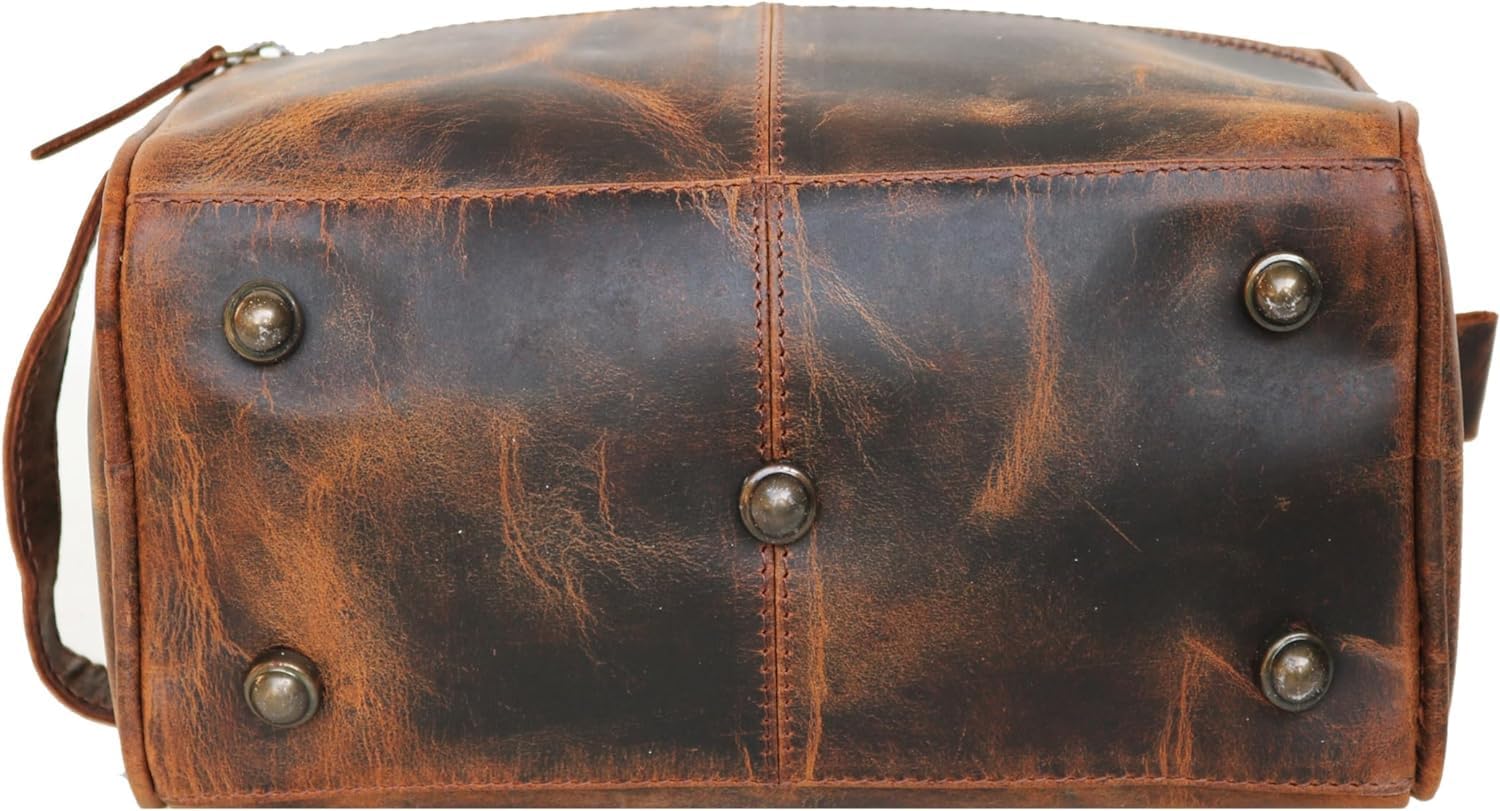 HAND CRAFTED TO LAST A LIFETIME: While other brands use faux or PU leather, we use 100% genuine soft, buffalo leather. We trust ours is thicker yet suppler than other leather toiletry kits for a distinct quality feel. The distressed rustic finish has a rugged durability that will stand the test of time. LEATHER + WATERPROOF LINING - Style + functionality. Exterior Top grain buffalo leather combines with a nylon inner lining & a water resistant inner bottom. YKK metal zippers give long-lasting functionality. PERFECT GIFT - Looking for that perfect gift for a birthday, anniversary or wedding? Surprise your husband, brother, father or fiancee with a Jaald toiletry travel bag, the perfect gift that will last a lifetime. ENOUGH ROOM FOR ALL YOUR BATHROOM BASICS: The compact yet spacious compartment with protective water resistant lining holds everything you need. A main compartment & a zipper pocket store smaller items to keep your products organised. Measures 10 inches x 5 inches x 5 inches WIDE OPENING FOR EASY ACCESS: Find what you need in seconds without having to rummage around. Smooth YKK ZIppers make opening and closing a breeze. We use metal YKK zippers that will stand up to the test of time. Complete with leather handle for easy carrying