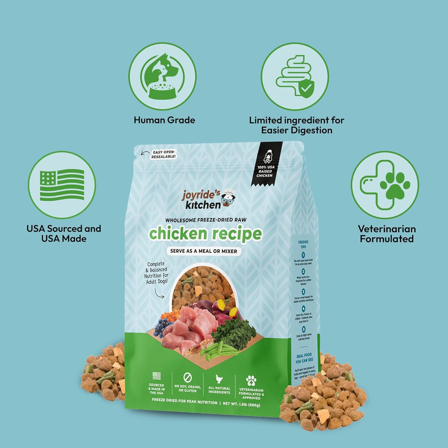 | Special Ingredients | Carrots, Kale, Blueberries, Ranch-Raised Chicken |