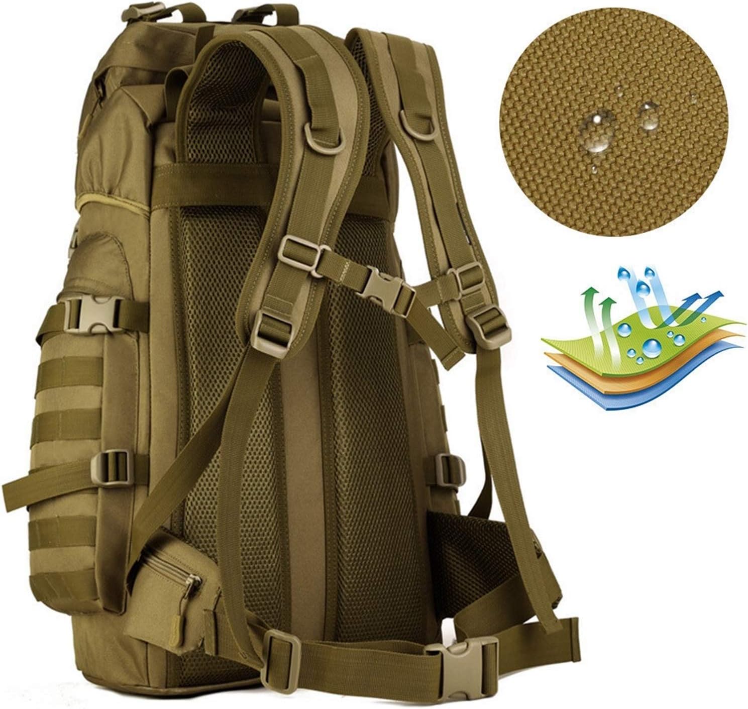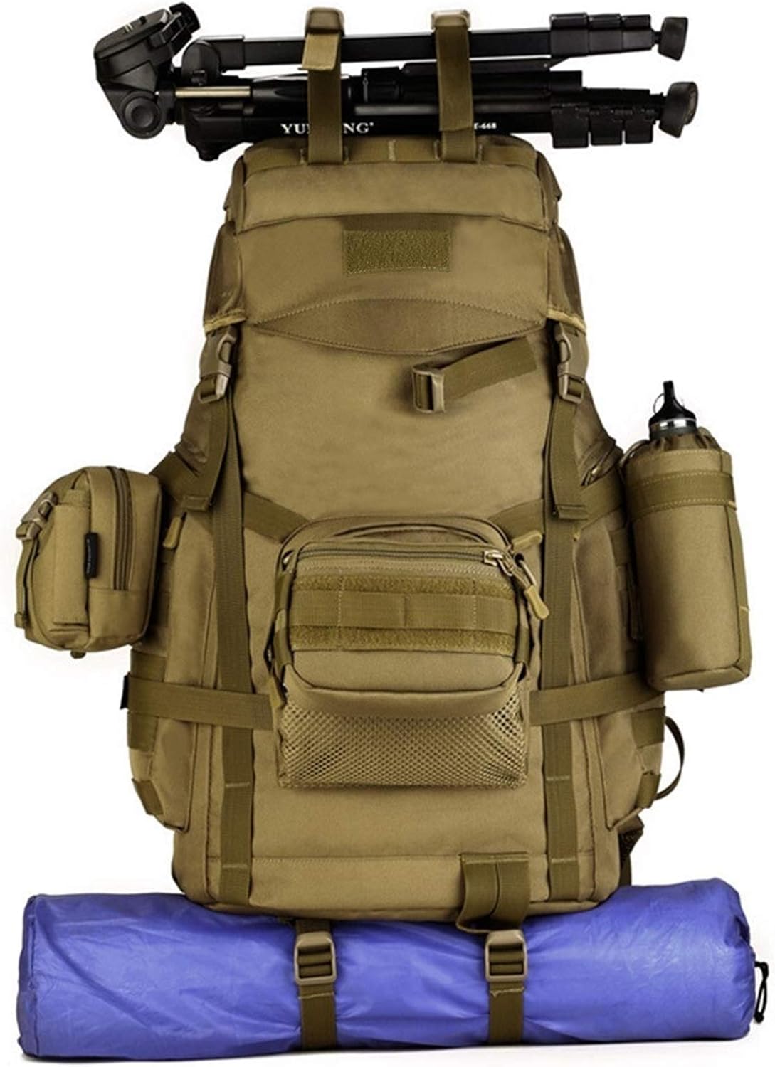 60L Tactical Backpack Man with Tripod Holer Army Rucksack Sports Bag for Hiking Camping Hunting Trekking