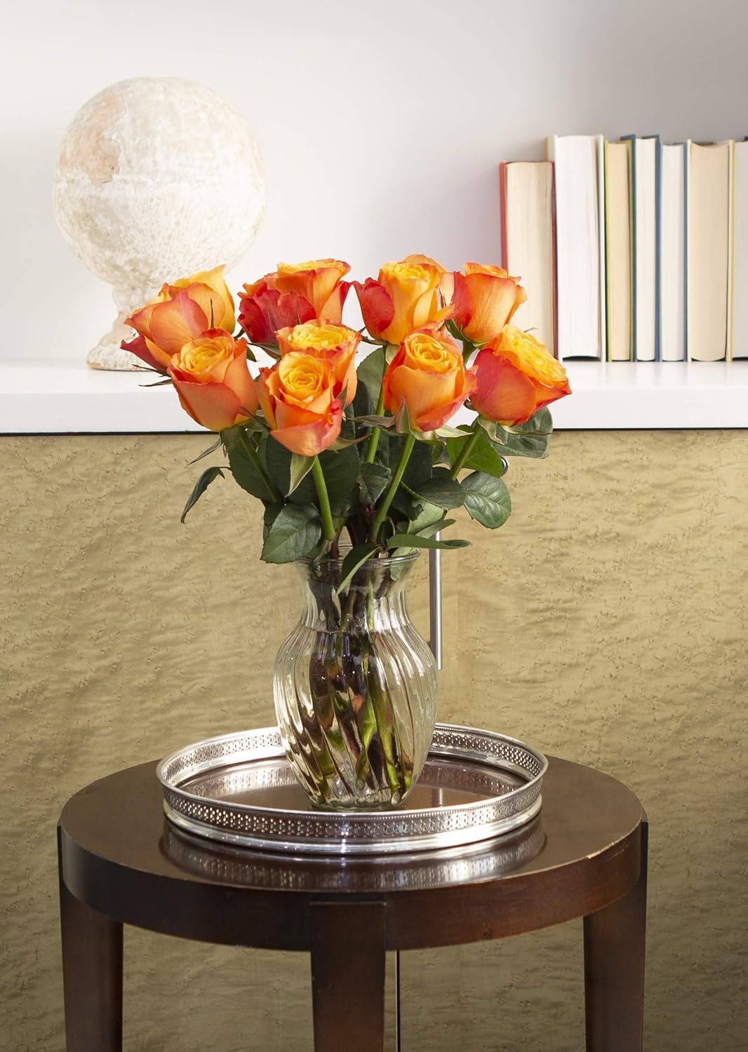 Valentine Bouquet : Show your love with fresh flowers 12 Orange Roses with vase (Vase style, color, or shape may vary),our bouquets arrive ready to brighten their Valentine’s Day.