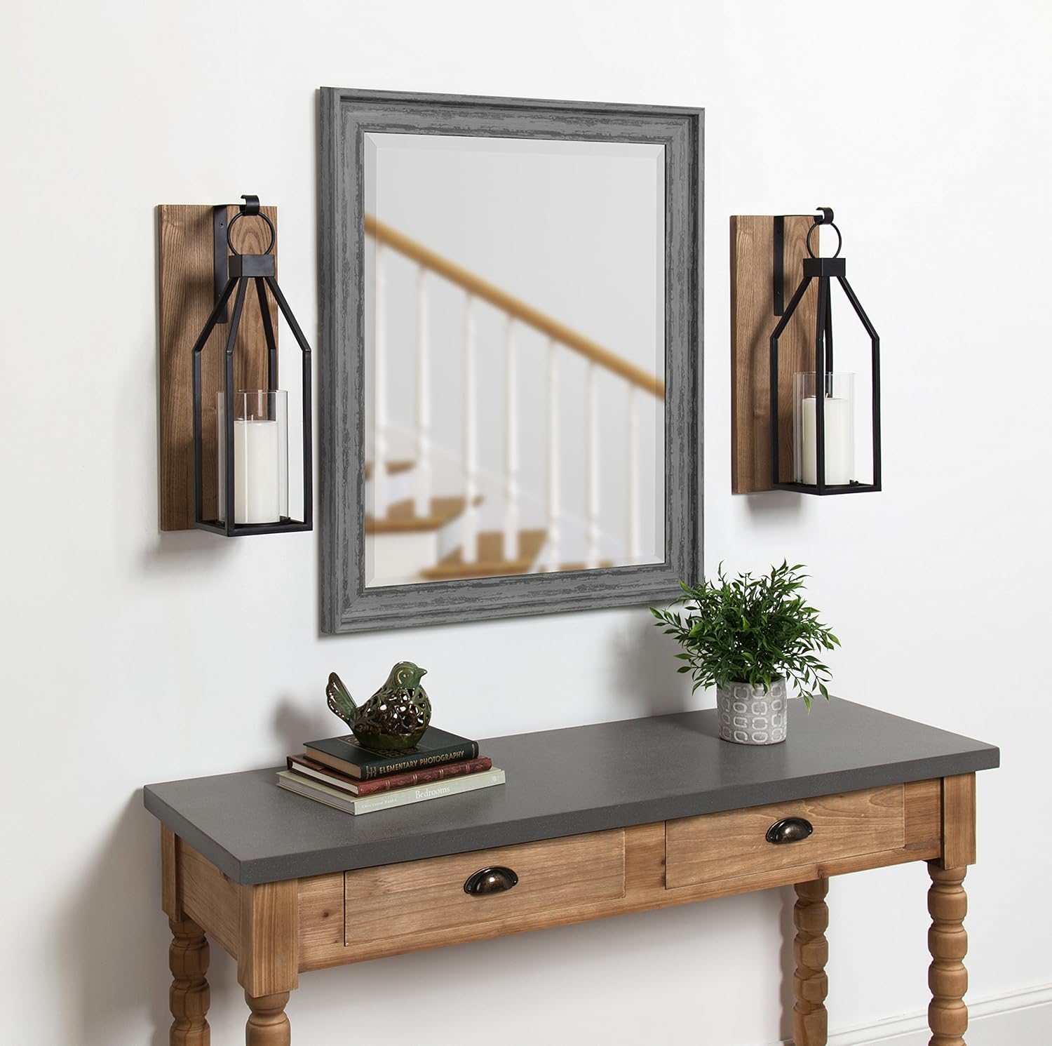 Bring enchantment and warmth into your home with the drama of the Oakly Wall Sconce candle holder. The clean lines of the design feature a glass cylinder with a black metal candle holder that is secured to a rustic wood plaque. It's a transitional style that will look great with your home decor. It fastens flat against a wall using two bolts or nails (not included) through the installed recessed keyhole hangers. The black metal frame is 18 inches high, and the weatherboard back panel is 18.75 x 7 inches. We recommend a 3 or 3.5-inch diameter, round flameless candle to use on the 4-inch wide candle holder base. The included glass pillar stands 7.5 inches high and sits entirely within the base and over a candle. The classic silhouette and traditional finish make the Oakly Wall Sconce a sophisticated wall accent for an entryway, hallway or dining room. Use two sconces, one on each side of a bed, to create a simply elegant bedroom haven or delight in the comfort of natural candlelight after you've decorated your favorite bathroom with the warmth this sconce brings. This compact piece is perfect for an ambiance-enhancing candlelight look anywhere in your home.
