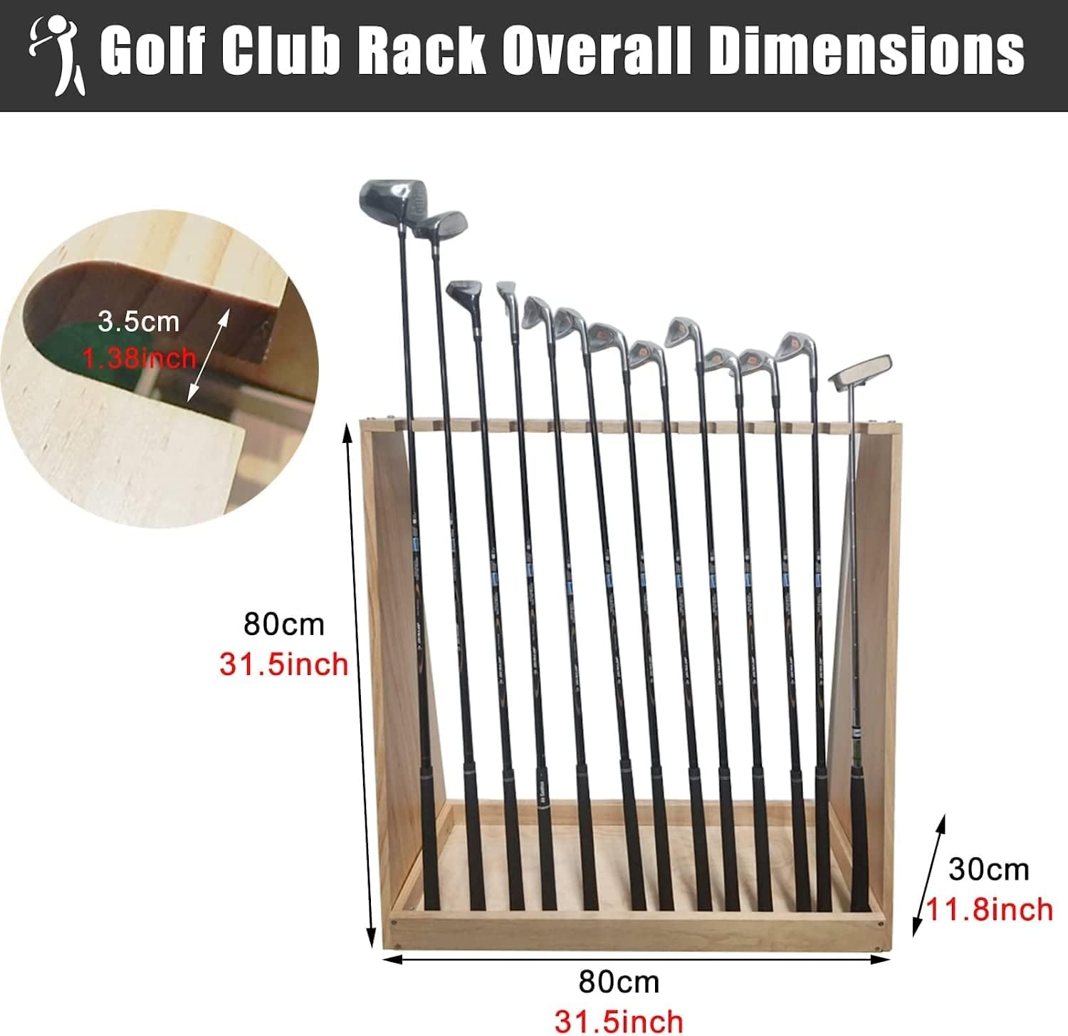 Elegant and modern design accessory is sure to be the perfect home for your valuable clubs. Suitable for golf courses, professional shops or golf courses that want to organize a golf course, it is definitely a perfect gift for golf lovers! Specification:- Material: Natural Wood- Color: Natural color- Overall Dimensions (Width x Depth x Height): 80x30x80 cm / 31x12x31 inch- Number of Holes: 13- Hole Diameter: 1.38 inch / 3.5 cmFeatures:- Easy to carry and install.- The distance between the clubs is moderate, it is not easy to collide, - Anti-skid base prevents scratching of the floor and fixes the ball rack.- Suit for office/garage/homem golf rack golf equipment storage.- It's unique design can be perfectly integrated with home decoration, thus providing an opportunity for elegant display of sports equipment.Packageincluded:- 1 x Golf Club HolderPlease Note:- The golf putters are not included.- There may be 1-2 cm errors in manual measurement, please refer to the actual product. (0.39 inch=1cm)- The reason of computer resolution, there may be differences in color to the actual goods received, prevail.Efficient Buyer Service:- If you have any questions, please feel free to email us. We will get back to you within 24 hours.- If you need more styles, please search for our product " golf club holder" to get more other styles.