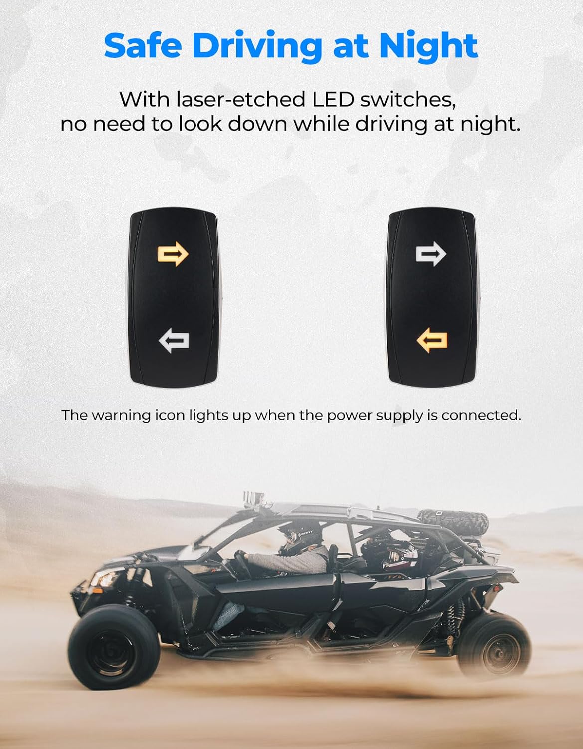 | Included Components | Amber Turning Signal Lights x4, Harness x1 set / Relay x1 / Nylon Cable Ties x1set, Installation Guide x1, Left/Right Rock Switch x1, Red Turning Signal Lights x4 |