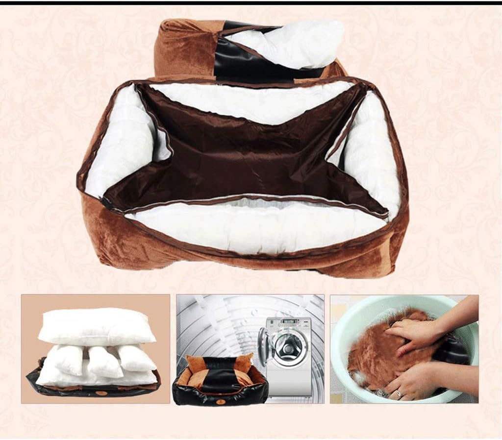 Brand: Size: 70x55x34cm , 90x70x36cm , 120x80x38cm , 150x110x45cm Sofa type design, backrest lengthening design, luxury domineering PU stitching, not easy to deform, easy to clean, tight stitching, invisible zipper, beautiful and smooth Short fluffy skin-friendly, three-dimensional PP cotton, soft and comfortable, strong resilience Pet nests and mats can be removed and washed, machine washable and hand washable Product name: Pet Bed Color: picture color Size: 70x55x34cm , 90x70x36cm , 120x80x38cm , 150x110x45cm