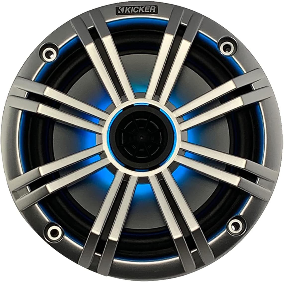 Receiver: AM/FM/Bluetooth Streaming Up to 30 Feet USB Charging and Thumb-Drive Playback Four Channel Speaker Output and Full-Range RCA Output Customizable EQ Fits in Gauge Opening Uses USB, RCA, AM/FM, Bluetooth Audio Sources USB playback and Charging Rotary Encoder AUX Input Sensitivity 500 mV Power Output [@ 14.4V, 4-Ohm, <10% THD+N]: 25W x 4 Frequency Response: 20-20kHz Signal to Noise Ratio: 87dB Line-Out Level: 2.5v Outer Trim Ring: 4.4 Inch Mounting Depth: 3.9 Inch Mounting Hole Diameter: 3 Inch Protrusion Mounting Surface: 1.25 Inch IP Rating: IPX66 BT Range: 30 Ft 6.5 Speakers: 65 Watt RMS Power Multicolor LED Lighting Capablities Moisture-draining System Polypropylene midwoofer Rubber surround Sealed Motor Structure 1/2 titanium dome tweeter 4 ohms impedance Sensitivity: 90dB Frequency Response: 35-21,000 Hz Top-mount Depth: 2-7/8 inch Cutout dimensions: 5-1/8 inch Speaker Grilles: Silver Grilles Durably Constructed Compatible with Kicker marine speakers 22 Antenna: Weather Resistant AM/FM Marine Antenna Provides excellent Radio reception 22 Braided Cable Speaker Wire: Hyper-Flex rope-lay speaker cables Silver-tinned OFC (oxygen-free copper) construction Superior bass response and signal clarity Hyper-Flex lay flat insulation virtually disappears under carpets Gauge: 16 50 Ft Long
