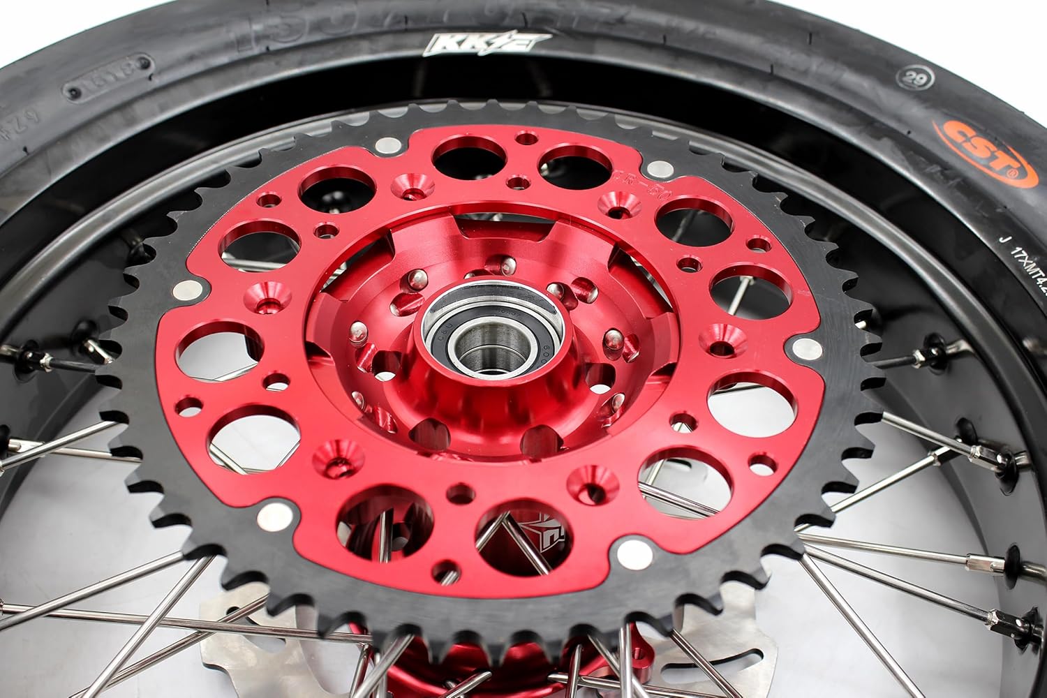 KKE 3.5/4.25*17” Supermoto Motorcycle Spoke Wheels Rim with Tires Set Compatible with HONDA XR650L 1993-2025With front 320mm red disc,rear 220mm disc,rear 44T red sprocket and brake adapter.Mounted with Front 110/70-17 Tire, Rear 150/70-17 TiresThe Pictures show exact wheels you will receiveKKE wheels will fit your bike plug and playFeatures:100% Brand New, strong enough for road and racing6082-T6 Aluminum CNC Hub, Stronger than stock hub7050-T6 Aluminum GLM Rim304 Stainless Steel Spoke with Alloy NippleRed 320MM Front DiscRed Bracket AdapterSilver 220MM Rear DiscRed 44T SprocketWheels are Already Assembled well(Also With tire, Hub, Rim, Spoke, Nipple and Bearing)The Seals and Spacers are Packed In Small Package.Fitment:Compatible with HONDAXR650L 1993-2025Note:These wheels are NOT OEM size, they are converted from the model of CRF250R(2004-2013)/CRF450R(2002-2012). Wheels cannot fit OEM Speedometer, discs, sprocket, bearings, spacers and seals.(If you need replacement parts,please feel free to contact us.)Please Check The Fitment Above Before Check OutColor:Red HubBlack RimSilver SpokeSilver NippleAnodized Color, last a long timeInstruction For The Order:1. Please Inform Us The Year And Model Of Your Motorcycle Before Or After Check Out. 2. After The Shipment Of Package, We Will Notify You The Tracking Number. 3. Please Feel Free To Contact Us If You Require More Detailed Information Or Have Any Special Instruction For The Processing Of Your Order.4.Please Note Wheels are Signature Required Upon Delivery Due To Safety ConcernWarranty Information:1.We Will Accept Return If It Is Not Compatible / Wrongfully Sent / Being Damaged 2.Please Contact Us Before Send The Merchandise Back, Thank You 3.Customer is Responsible For Return Freight Charges If There is Nothing Wrong With Our Item.