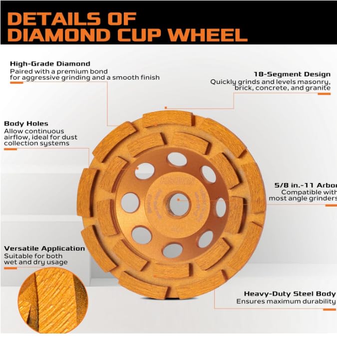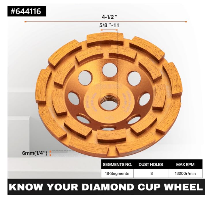 644025 Diamond Concrete Grinding Wheel 4 inch for Polishing and Cleaning Stone Concrete Surface, Cement, Marble, Rock, Granite, and Thinset Removing, Angle Grinder Wheels Cup