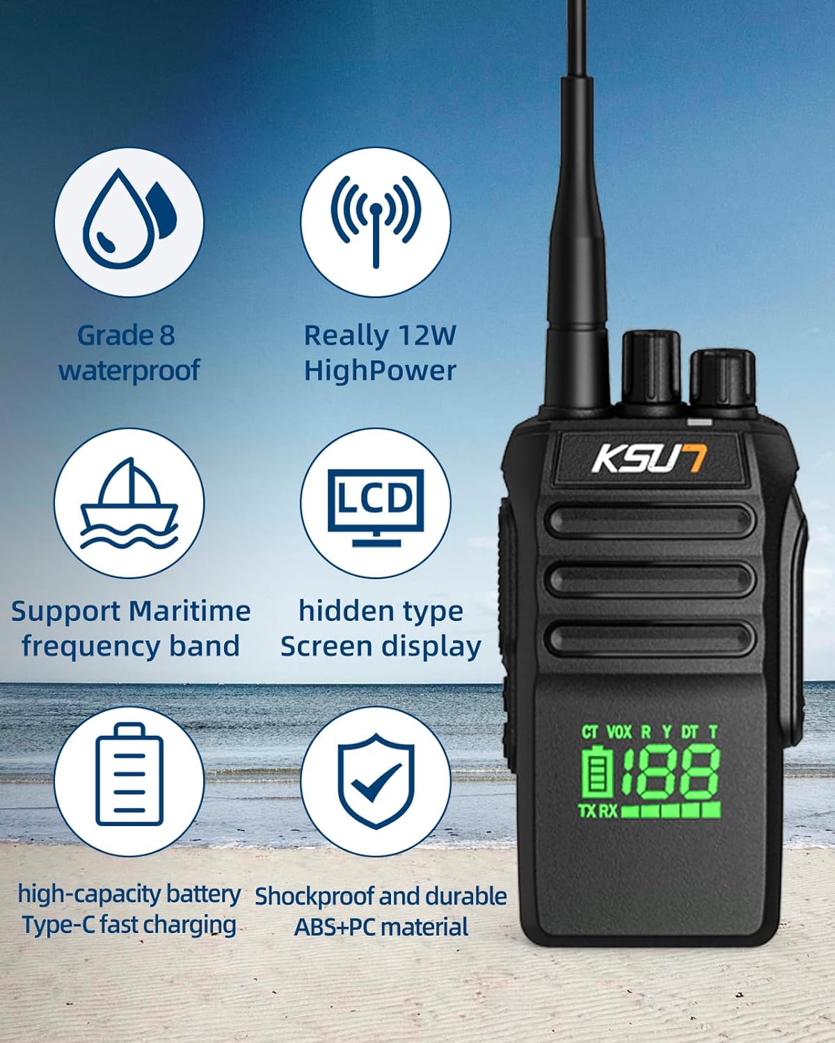 | BuiltIn Media | 1 x Belt clip & 1 x Lanyard & 1 x English Manual, 1 x Car charger & 1 x Adapter & 1 x Charging cable, 1 x KSUN P25Marine Transceiver, 5 x 1.2V(AAA)Battery, 5 X AAA Ni-MH Batteries Include |