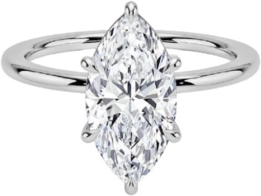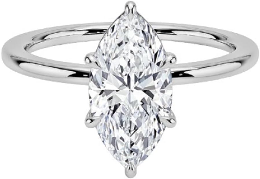 This stunning IGI-certified lab-grown diamond engagement ring showcases a brilliant marquise cut diamond, ranging from 1 to 5 carats, with exceptional E-F color and VVS1-VVS2 clarity. Handcrafted with meticulous attention to detail, this solitaire-setting ring is available in your choice of premium solid gold—10K, 14K, or 18K—in white, yellow, or rose gold options. Lab-grown diamonds offer the same physical, chemical, and optical properties as mined diamonds, providing timeless beauty with modern values. The very good cut ensures maximum brilliance and fire, making this ring a captivating symbol of your commitment. Perfect for engagements, weddings, anniversaries, or Christmas gifting, this customizable ring allows you to select the diamond shape that best reflects your personal style. The resizable design ensures a perfect fit for her special day. Each ring comes with IGI certification, guaranteeing authenticity and quality. Whether you're planning a proposal or celebrating a milestone, this exquisite diamond ring combines classic elegance with contemporary craftsmanship to create a treasured piece she'll cherish forever.