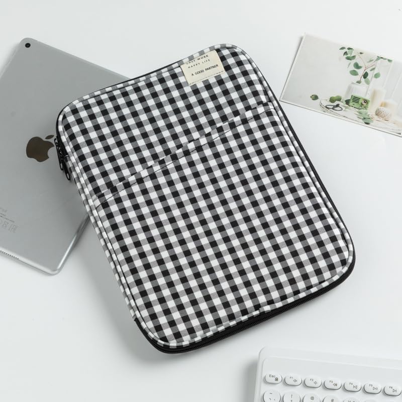 This 11/13-inch laptop bag is the perfect blend of cuteness and practicality. It features an elegant check pattern that adds a touch of charm, making it stand out. The high-quality construction ensures durability, protecting your laptop and other essentials.The bag functions as a laptop sleeve, providing a snug fit for your device. It also serves as a tablet bag, suitable for iPads and similar tablets. With a zipper organizer, it helps you keep your accessories neatly arranged. Whether you're going to work, traveling, or just need a convenient storage solution, this bag is up to the task. It makes for a wonderful stocking stuffer or a nice gift for those who appreciate both style and functionality.