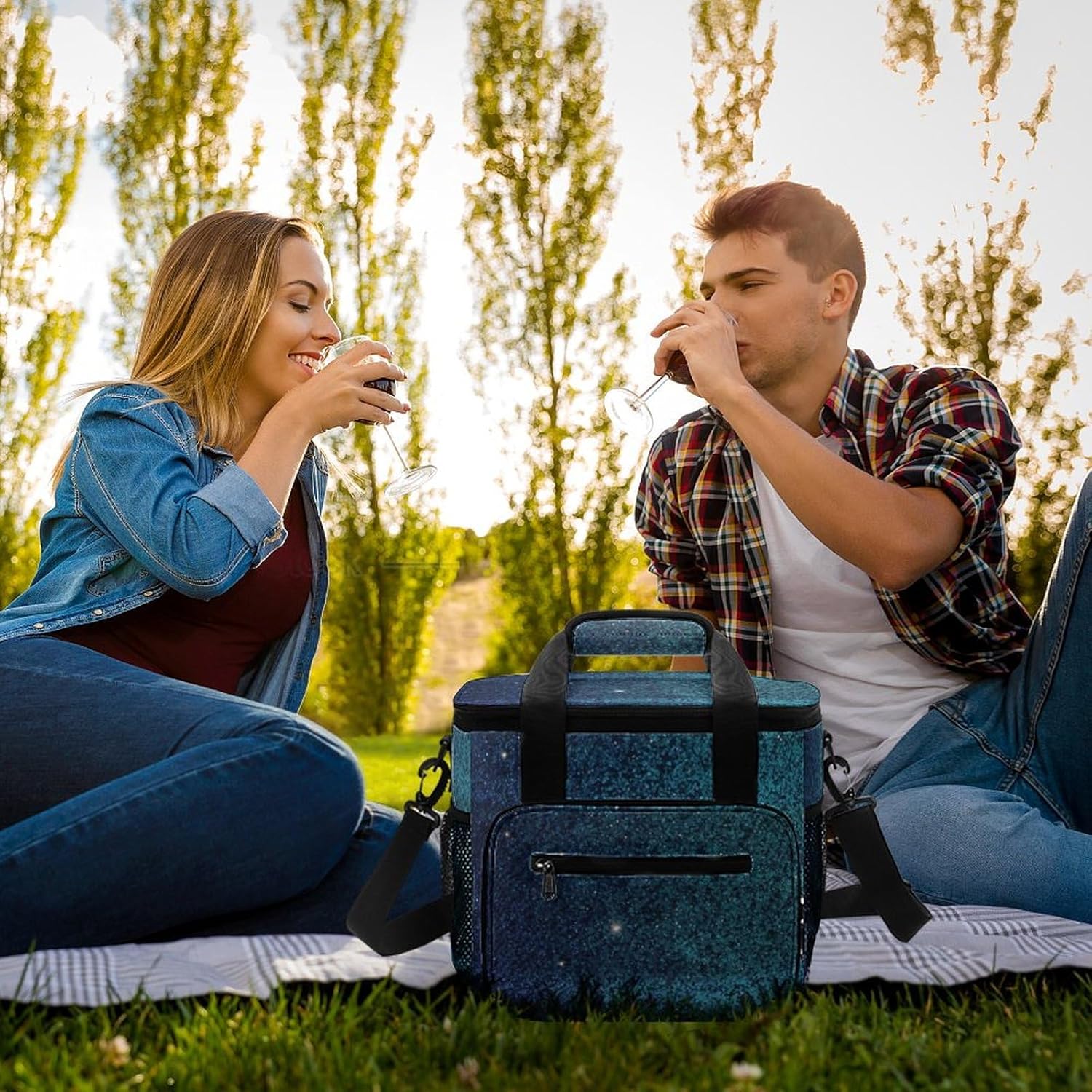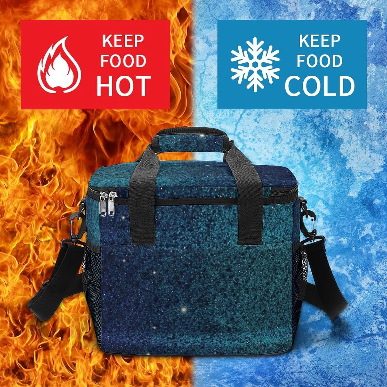 Our Teal Glitter camping ice pack of sturdy Oxford cloth, which is waterproof and durable. The multi-layer insulation structure is carefully designed inside, which has a significant heat preservation and cold preservation effect, which can keep ice drinks cool for a long time and hot food warm. The large capacity is enough to accommodate a variety of camping food and drinks. The comfortable handle and adjustable shoulder strap are convenient for carrying or carrying. The multi-pocket design on the outside is convenient for storing scattered small items. Oxford cloth is easy to clean and can be restored to cleanliness with simple treatment after use. Whether it is camping, picnic or outdoor party, it is your practical and considerate companion, easily meeting your refrigeration and heat preservation needs.