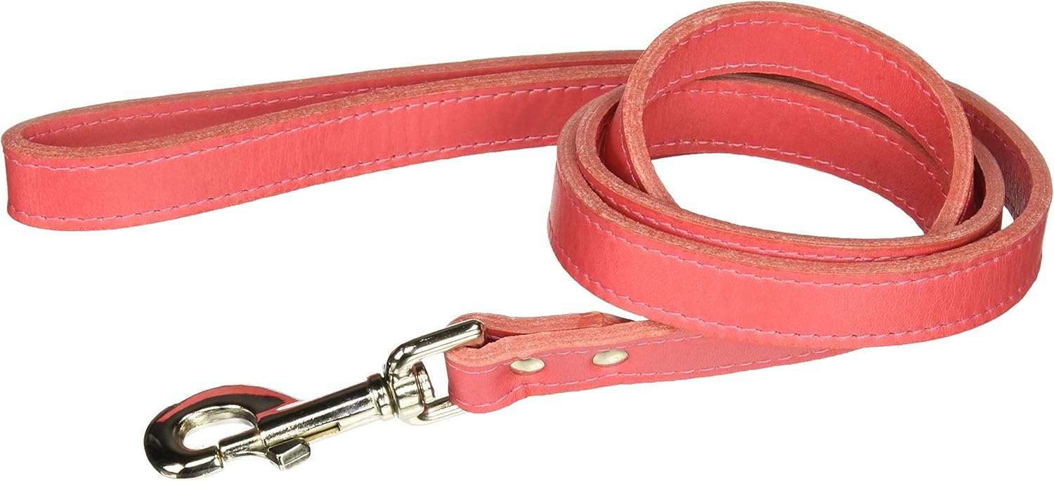 OmniPet Leather Brothers Signature Leather Dog Leash, 4' x 3", Pink